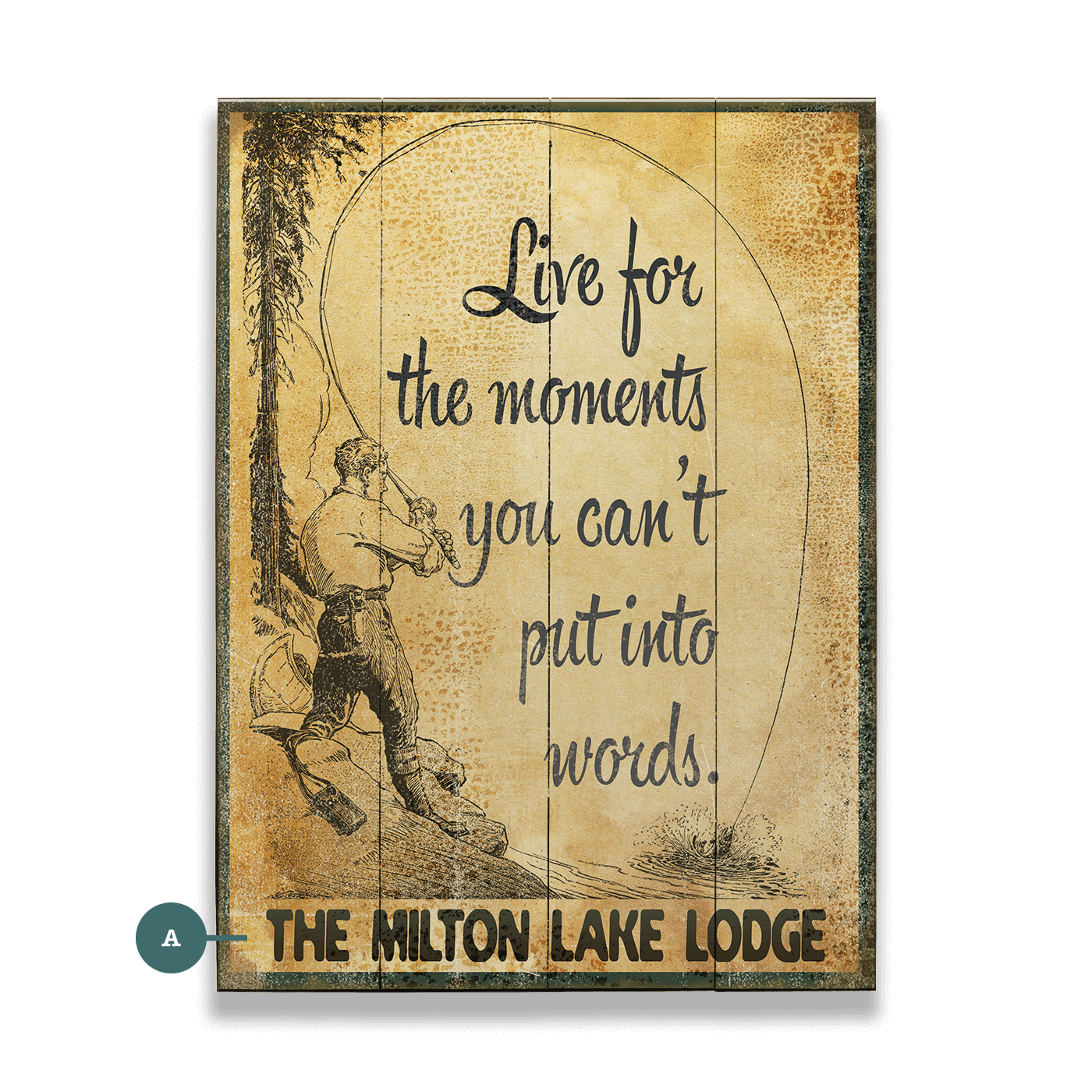 Capture the essence of adventure with this inspiring artwork, featuring a dynamic scene of an angler in action. The artwork beautifully illustrates the spirit of fishing, set against a backdrop of a rugged, lakeside setting. Accompanied by the motivational quote, 'Live for the moments you can't put into words,' this piece is perfect for anyone who cherishes the unforgettable experiences that come with outdoor adventures.