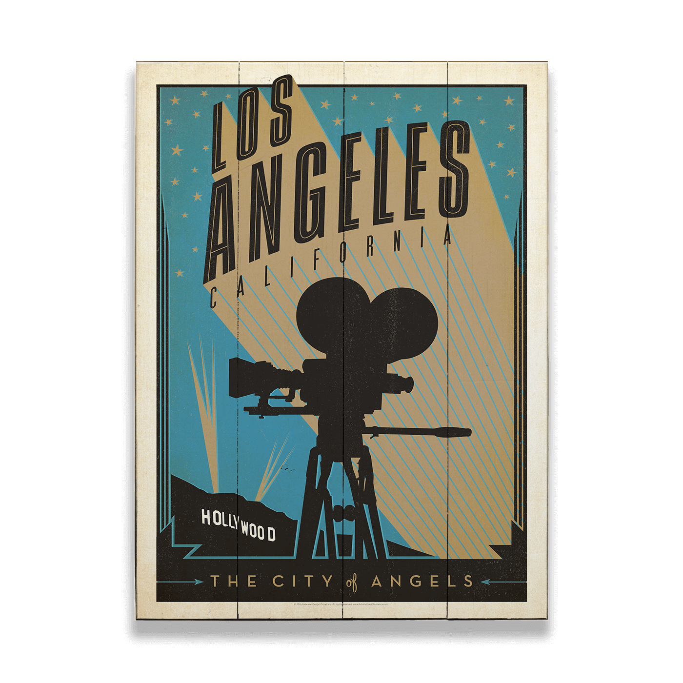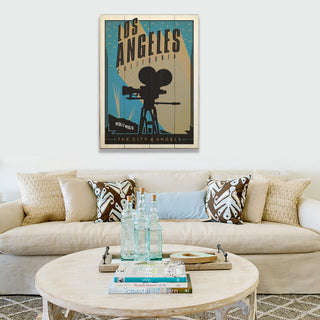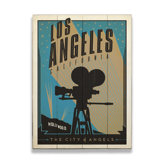 Capturing the essence of the entertainment capital of the world, this striking Los Angeles, California vintage-style artwork is a must-have for aficionados of classic Hollywood glamor. Featuring the iconic silhouette of an old-school movie camera set against a radiant backdrop reminiscent of California sunsets, it embodies the dreams and aspirations that the City of Angels represents. Ideal for those who love the nostalgia of the golden age of film, this piece serves as a statement of timeless allure, perfect for home decor, office spaces, or as a gift for the movie buff in your life.