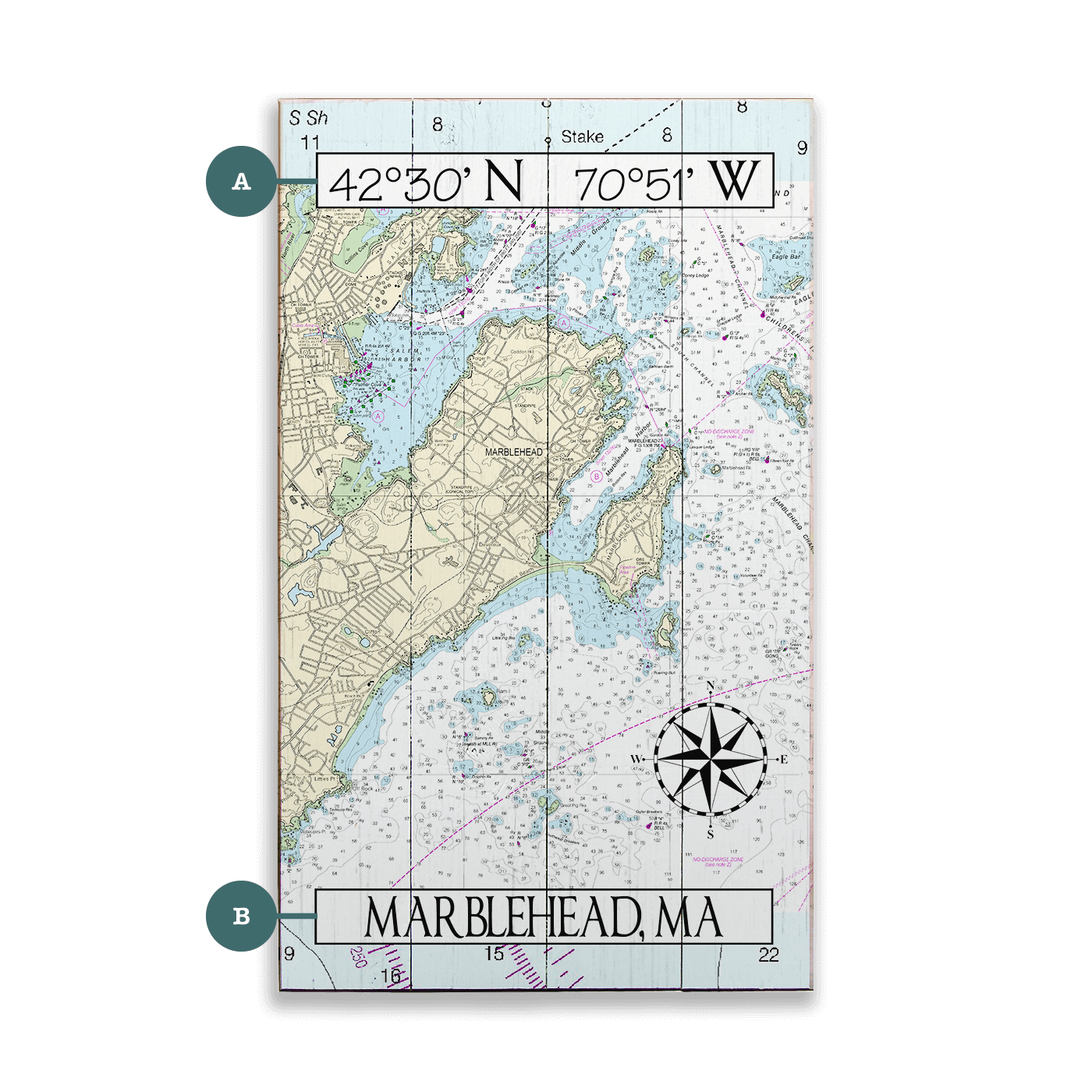 This nautical chart of Marblehead, Massachusetts, beautifully showcases the town’s rugged coastline, detailed maritime markings, and precise coordinates (42°30' N, 70°51' W). Known as the birthplace of the American Navy, Marblehead boasts a rich maritime heritage, charming historic streets, and a vibrant sailing culture. The town’s picturesque harbor is a haven for boaters, while its rocky shores and ocean views captivate visitors year-round. With customizable coordinates and name options, this artwork is a perfect way to celebrate Marblehead’s seafaring legacy and coastal charm in any home, office, or nautical-themed space.