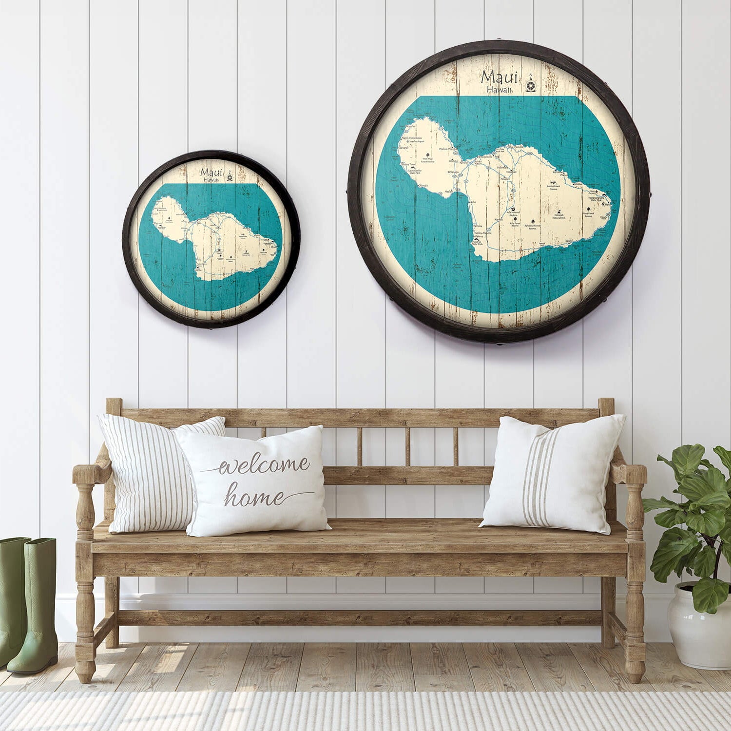 Bring a piece of the magical island of Maui into your home or office with this stunning decorative vintage map. With its pristine beaches, lush rainforests, and towering volcanic peaks, Maui offers endless opportunities for adventure and relaxation. Whether you're surfing the waves at Ho'okipa Beach, hiking through the bamboo forests of the Road to Hana, or simply soaking up the sun on the golden sands of Ka'anapali Beach, there's no shortage of fun and excitement to be had on this tropical paradise.