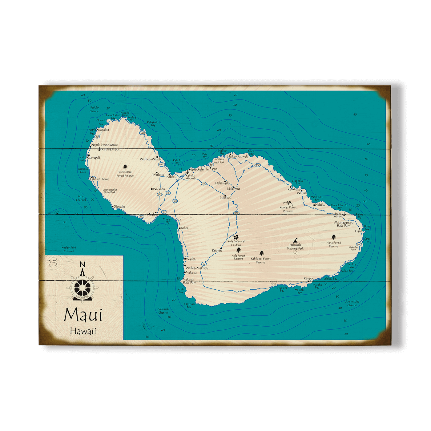Bring a piece of the magical island of Maui into your home or office with this stunning decorative vintage map. With its pristine beaches, lush rainforests, and towering volcanic peaks, Maui offers endless opportunities for adventure and relaxation. Whether you're surfing the waves at Ho'okipa Beach, hiking through the bamboo forests of the Road to Hana, or simply soaking up the sun on the golden sands of Ka'anapali Beach, there's no shortage of fun and excitement to be had on this tropical paradise.