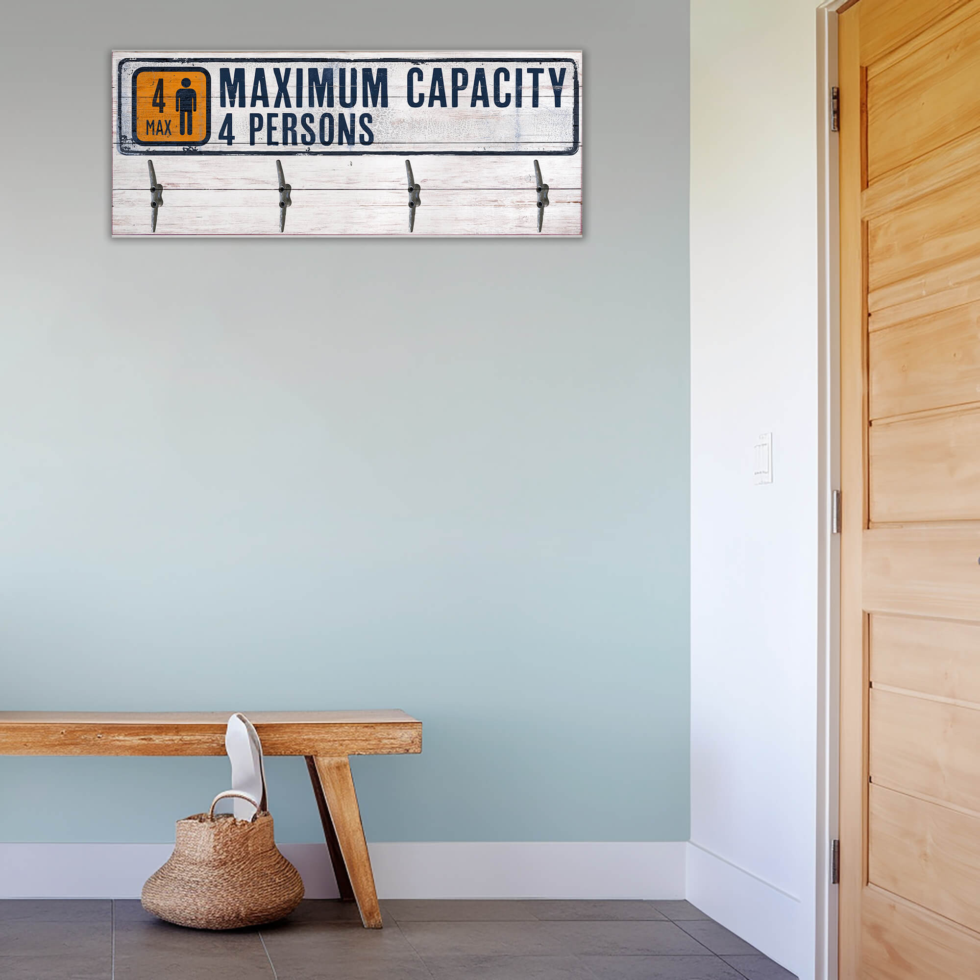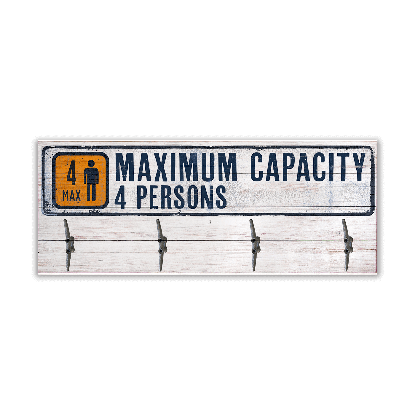 Add a unique touch to your space with this "Maximum Capacity" coat rack, perfect for those who appreciate a blend of practicality and playful design. Inspired by vintage signage, this coat rack not only serves as a functional piece to organize your jackets and accessories but also acts as a conversation starter with its eye-catching design. Crafted from durable materials with a distressed white and navy finish, it fits seamlessly into any decor, from rustic to modern. Ideal for entryways, mudrooms, or even commercial spaces, this coat rack ensures your area stays tidy while adding a hint of whimsical charm.