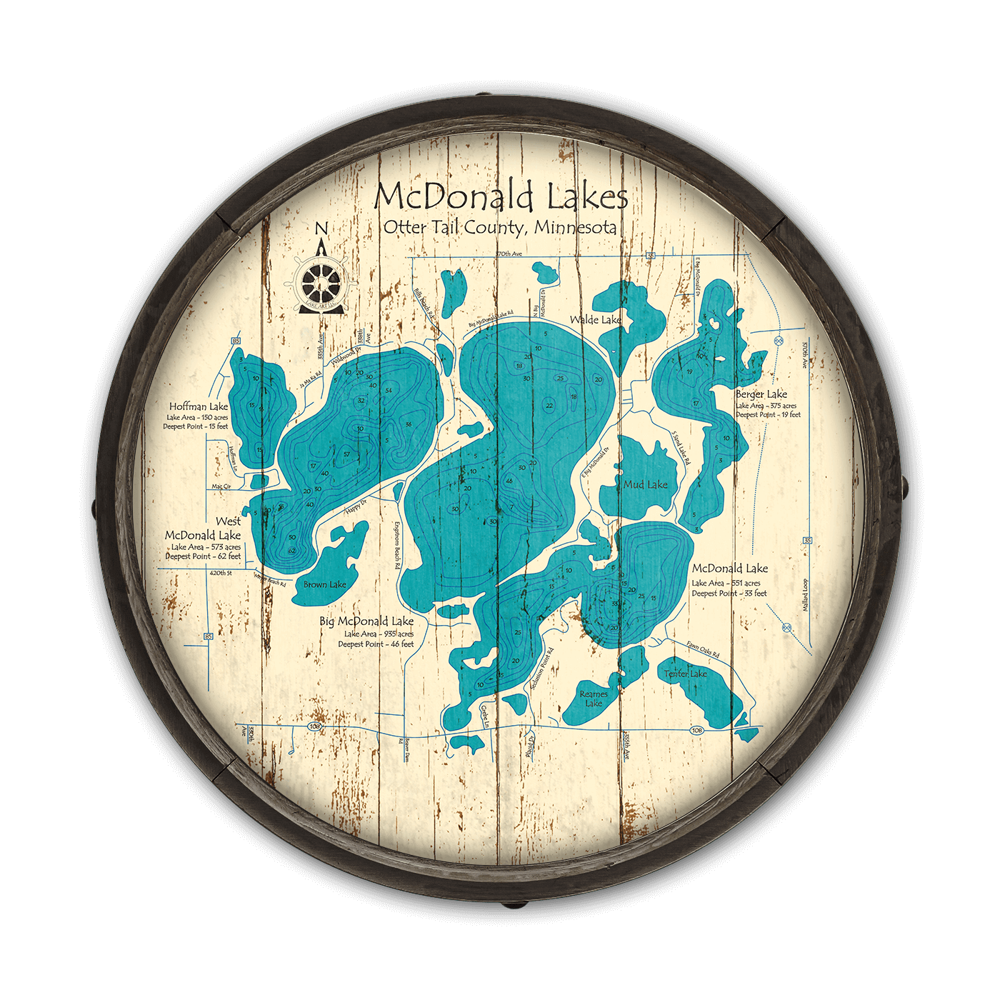 Experience the stunning beauty of Minnesota's McDonald Lakes in a whole new way with this exquisite vintage-style map. Nestled in the heart of the beautiful north woods of Minnesota, McDonald Lakes offer endless opportunities for outdoor recreation and relaxation. Whether you're into water sports along the pristine shoreline, or simply soaking up the sun on the sandy beaches, there's something for everyone to enjoy on these scenic lakes.