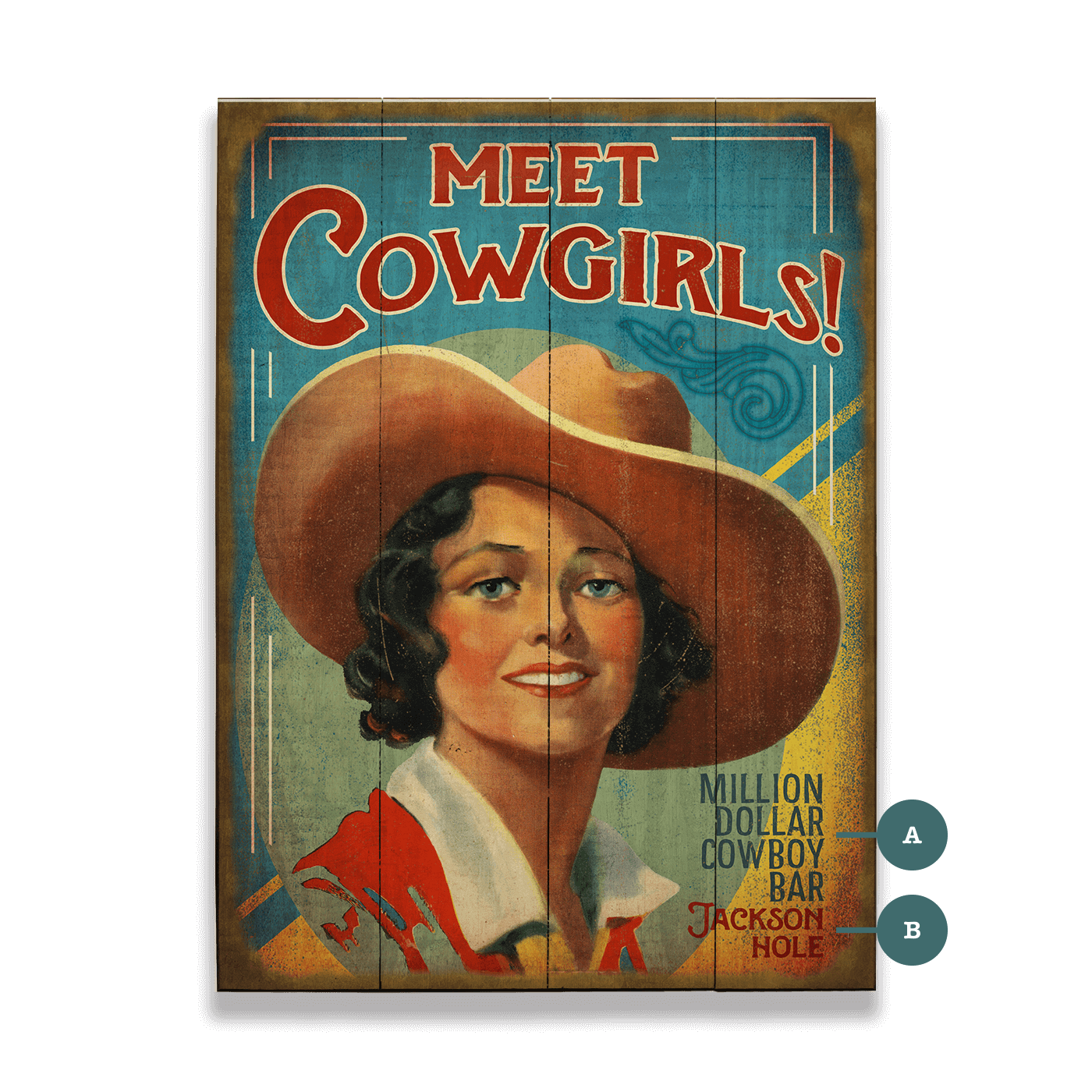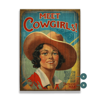 With a radiant smile and a confident gaze, this piece captures the charm and spirit of the American cowgirl. Her warmth and allure evoke the romance of the open range, where adventure and love intertwine under the wide Western sky. The rich, sun-worn hues and nostalgic design recall the golden days of the rodeo, dance halls, and moonlit serenades. Whether celebrating the cowgirl’s independence or the magic of a frontier romance, this image is a tribute to the fearless women who bring both heart and fire to the Wild West.