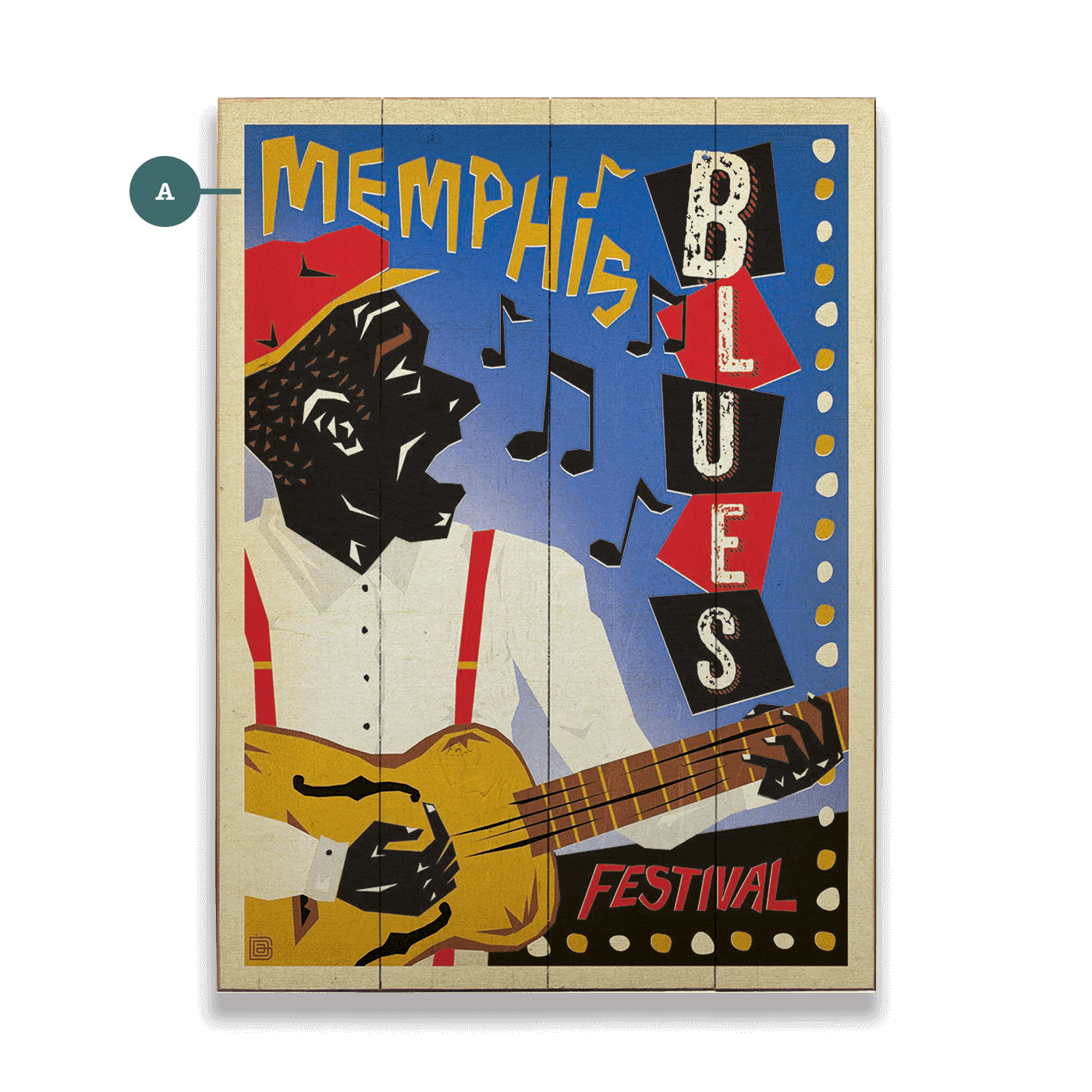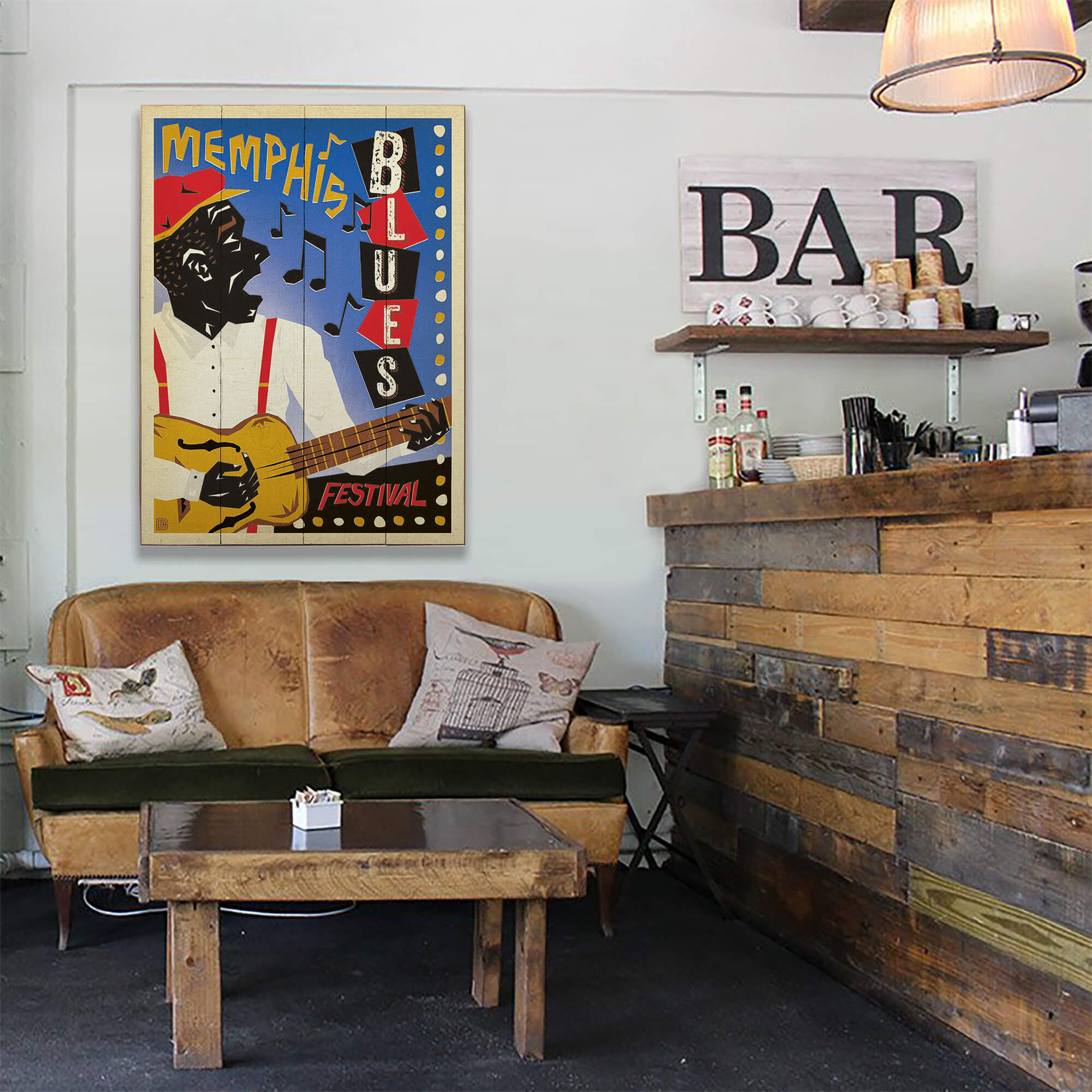 Immerse yourself in the soulful rhythm of the South with this striking Memphis Blues Festival artwork. The graphic captures the essence of the genre with a vibrant portrayal of a blues musician lost in his music, his guitar a beacon of Memphis' rich cultural tapestry. Bold letters dance across the canvas, echoing the powerful and emotive sounds that define the blues. Perfect for music lovers and those who resonate with the deep roots of Memphis music, this customizable piece allows you to tailor the text to feature your own musical event or personal slogan.