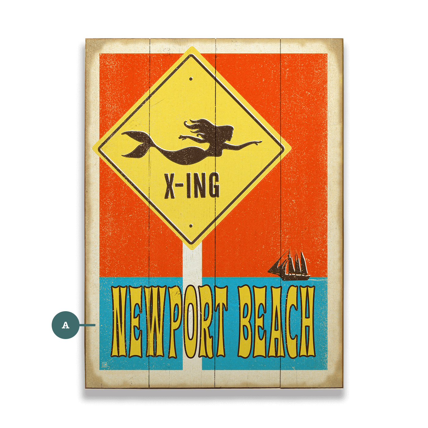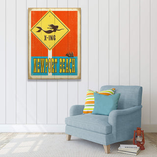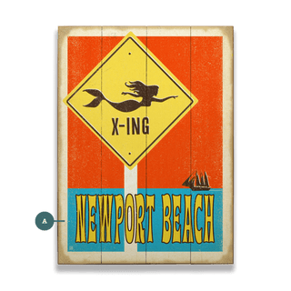 Catch the coastal vibe with this whimsical artwork, where the mythical mermaid crossing adds a splash of fun to the surf and sand. The playful design, set against a sun-soaked backdrop, perfectly captures the laid-back luxury and maritime mystique of this beloved California destination. Ideal for beach lovers and those enchanted by ocean lore, this piece can be personalized to point the way to your own seaside escape or favorite coastal haunt. It's a fun, eye-catching statement in any beach house, surf shack, or nautical-themed space.