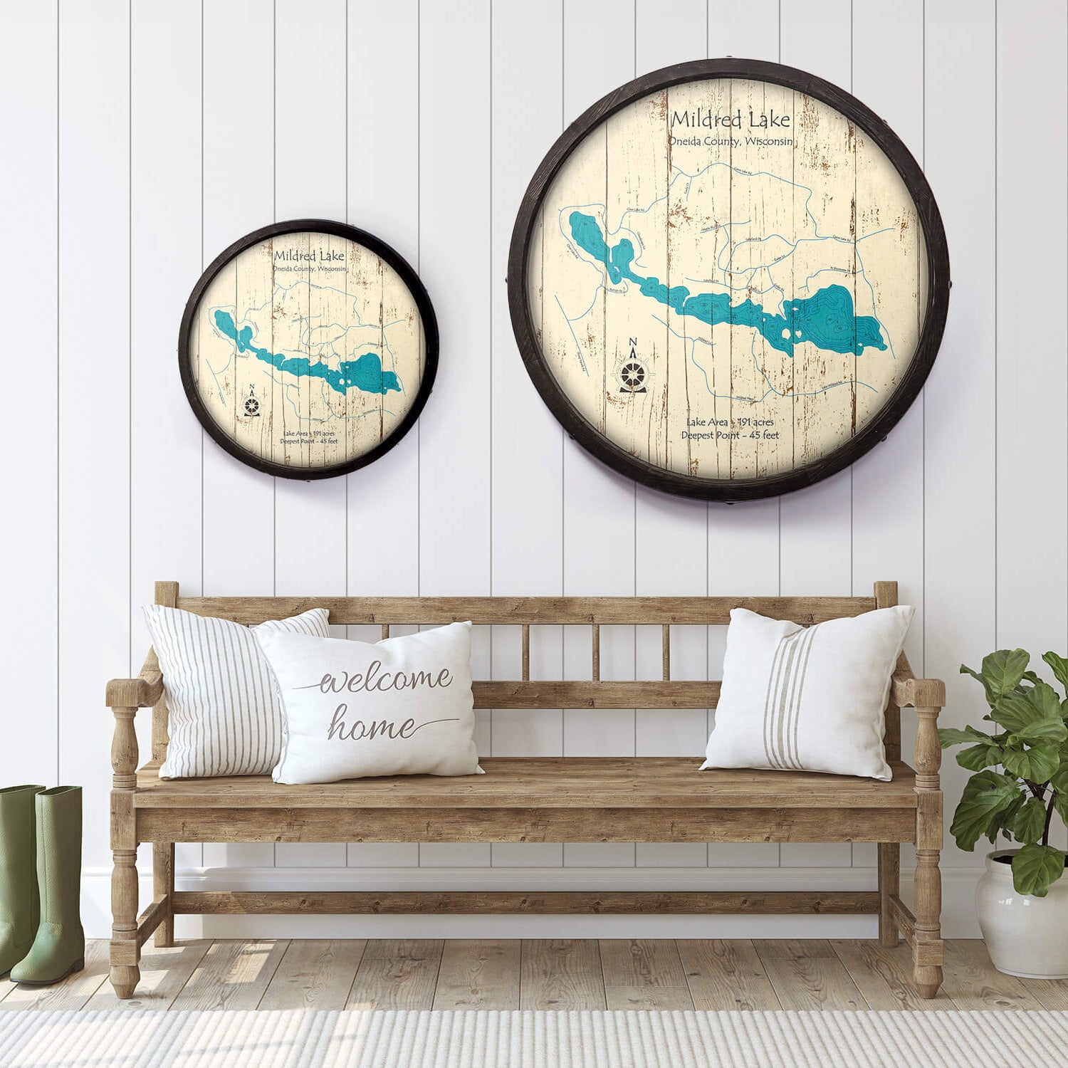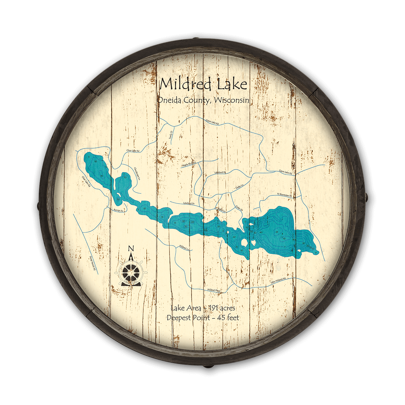 Introducing our beautifully crafted vintage map of Mildred Lake, Wisconsin - a unique piece of art that captures the essence of this stunning region. Perfect for lovers of rustic décor or anyone seeking a piece of Wisconsin history to add to their collection. Mildred Lake is surrounded by picturesque woodlands and teeming with diverse wildlife. Nature enthusiasts can delight in the ample recreational activities that Mildred Lake has to offer. Beyond the abundant wildlife, Mildred Lake boasts breathtaking scenic views, including serene sunsets that paint the sky in hues of pink and orange. The rustic charm of the wood or metal map adds to the vintage aesthetic and will look great in any room of your home.