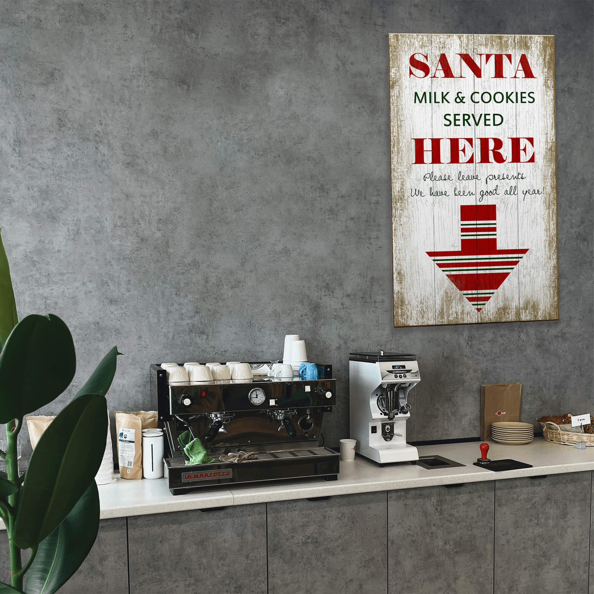 This playful holiday artwork is perfect for welcoming Santa with a cheerful message: "Milk & Cookies Served Here." Featuring bold red and green typography and a rustic, textured background, this piece adds a festive and charming touch to any Christmas decor. The fun design and inviting message make it ideal for creating a cozy holiday atmosphere in your home, reminding everyone of the joy and anticipation of Christmas Eve. Perfect for adding a whimsical element to your holiday decorations.