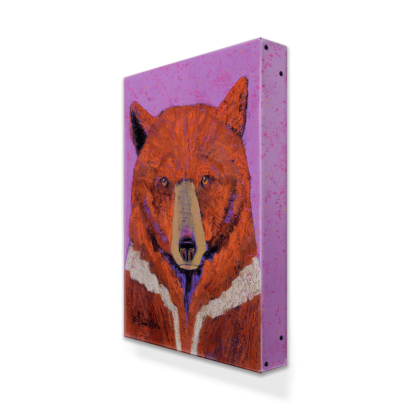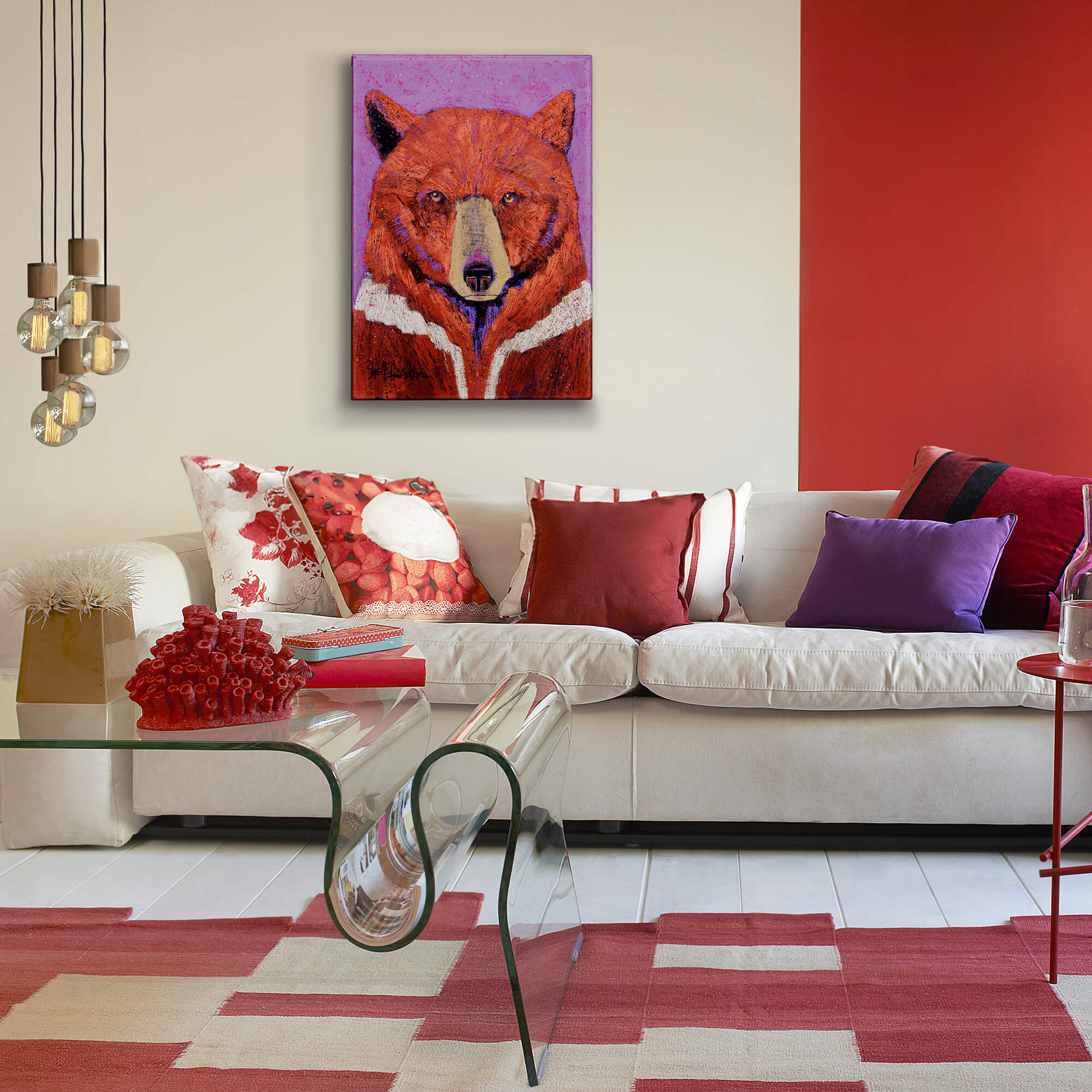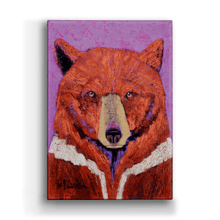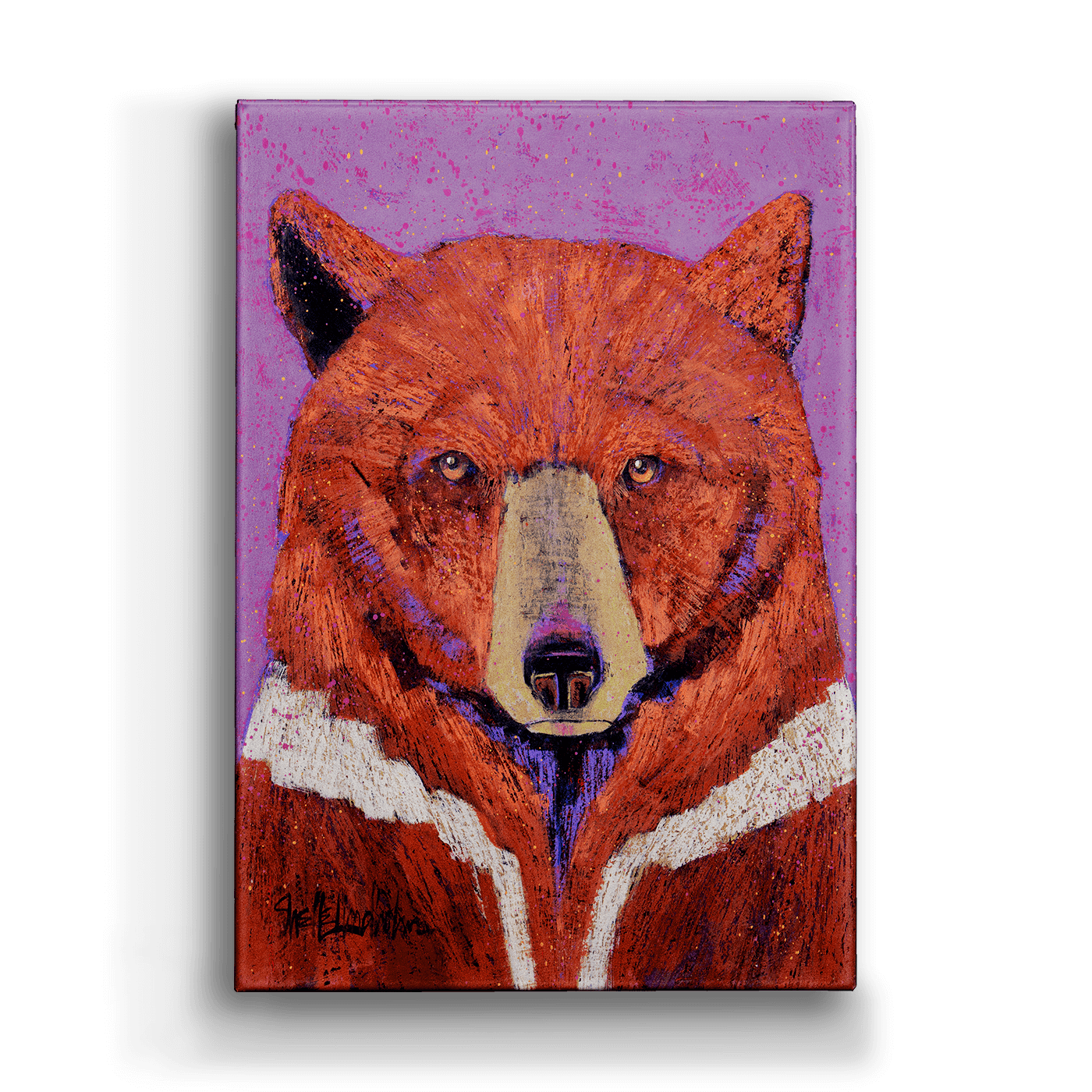 Command attention with this striking artwork featuring a majestic bear against a vibrant purple backdrop. The rich orange and brown tones of the bear’s fur create a powerful contrast, while the fine details bring depth and intensity to its gaze. Perfect for adding warmth and bold energy to any space, this piece celebrates the regal beauty of wildlife with a contemporary artistic twist.
