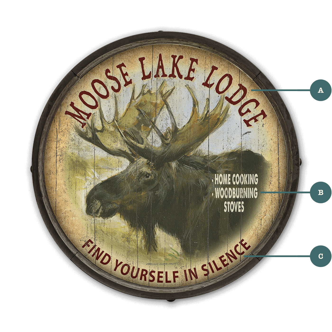 Embark on a tranquil journey with "Moose Lake Lodge," a stunning piece of art that captures the quiet majesty of the wilderness. Featuring a dignified moose set against a serene lake backdrop, this artwork exudes the peaceful solitude of a lakeside retreat. The gentle invitation to "Find Yourself in Silence" speaks to those seeking respite from the clamor of everyday life. Perfect for hanging in your home or getaway lodge, this sign can be customized to reflect your personal touch, making it a unique sanctuary emblem for solitude-seekers and nature lovers alike.