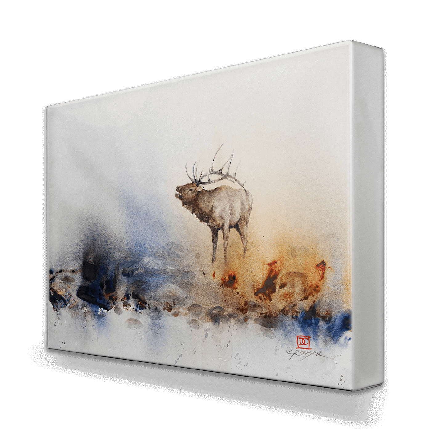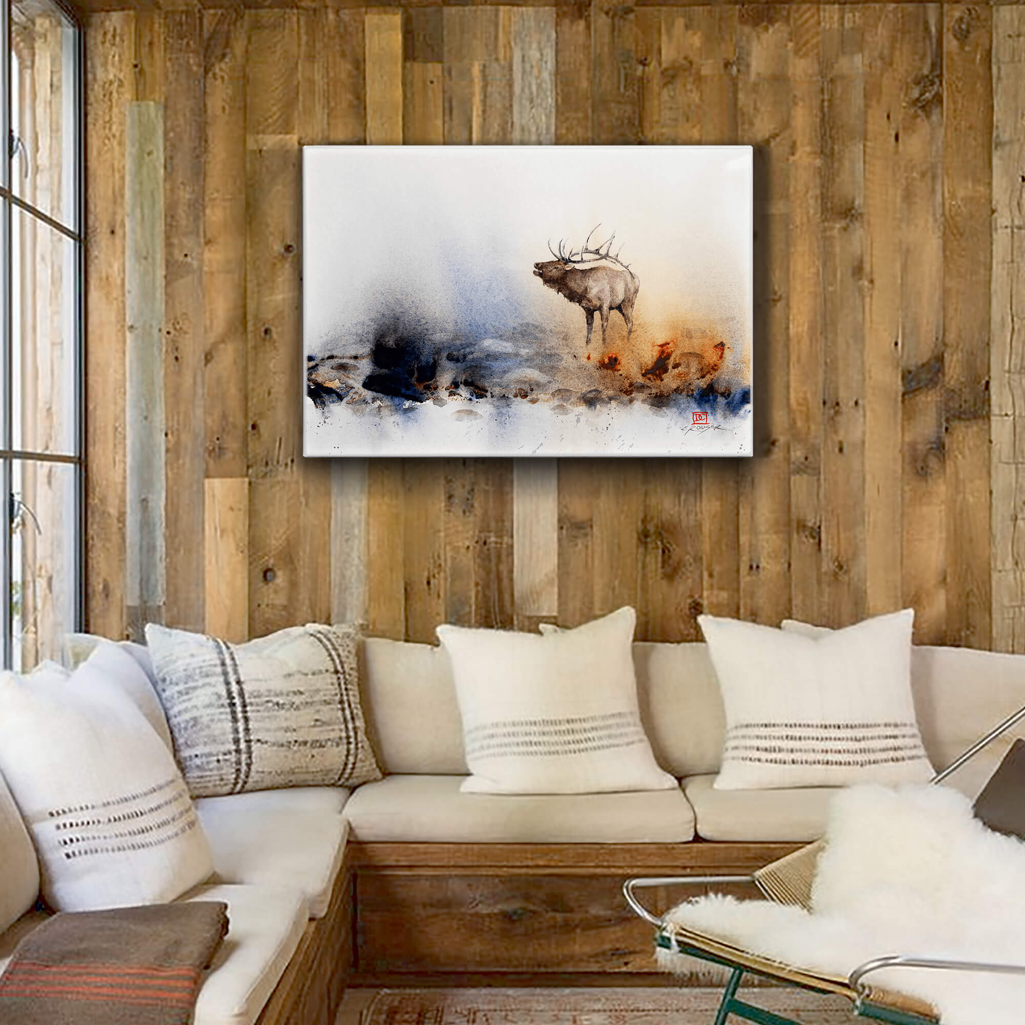 Experience the serene beauty of the wilderness with this captivating watercolor painting of an elk bugling at dawn. Set against a soft, misty background, the majestic elk stands prominently, its impressive antlers and robust form rendered with exquisite detail and a splash of earthy colors. This artwork perfectly captures the essence of the wild and the quiet dignity of one of nature's most noble creatures. Ideal for those who appreciate wildlife art and the tranquil beauty of nature, this painting will bring a touch of the outdoors into any living space or office.