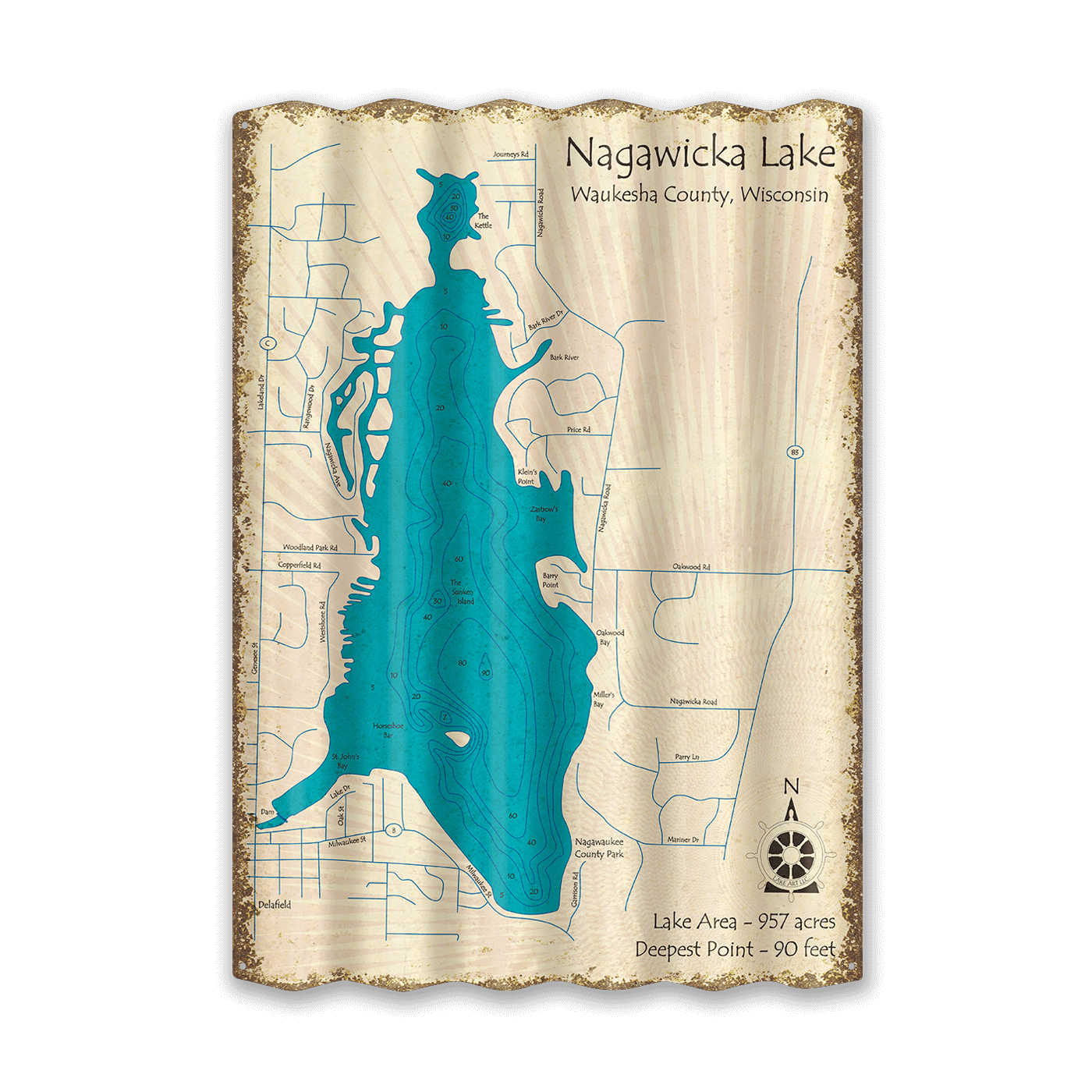 Nagawicka Lake, Wisconsin - Corrugated Metal Wall Art