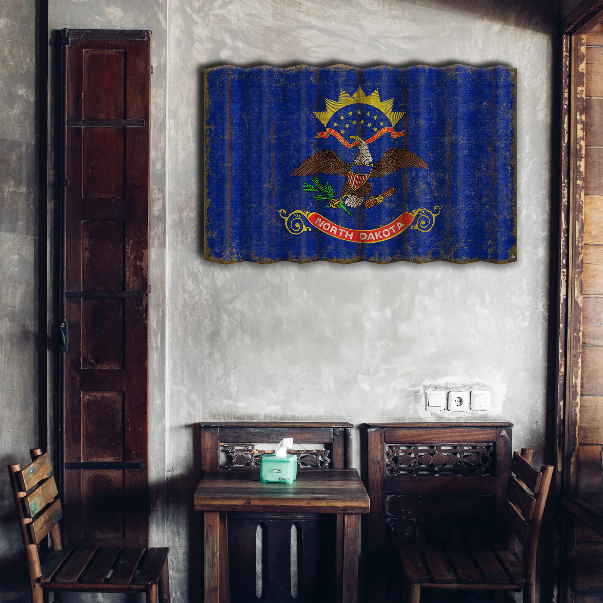 North Dakota State Flag - Corrugated Metal Wall Art