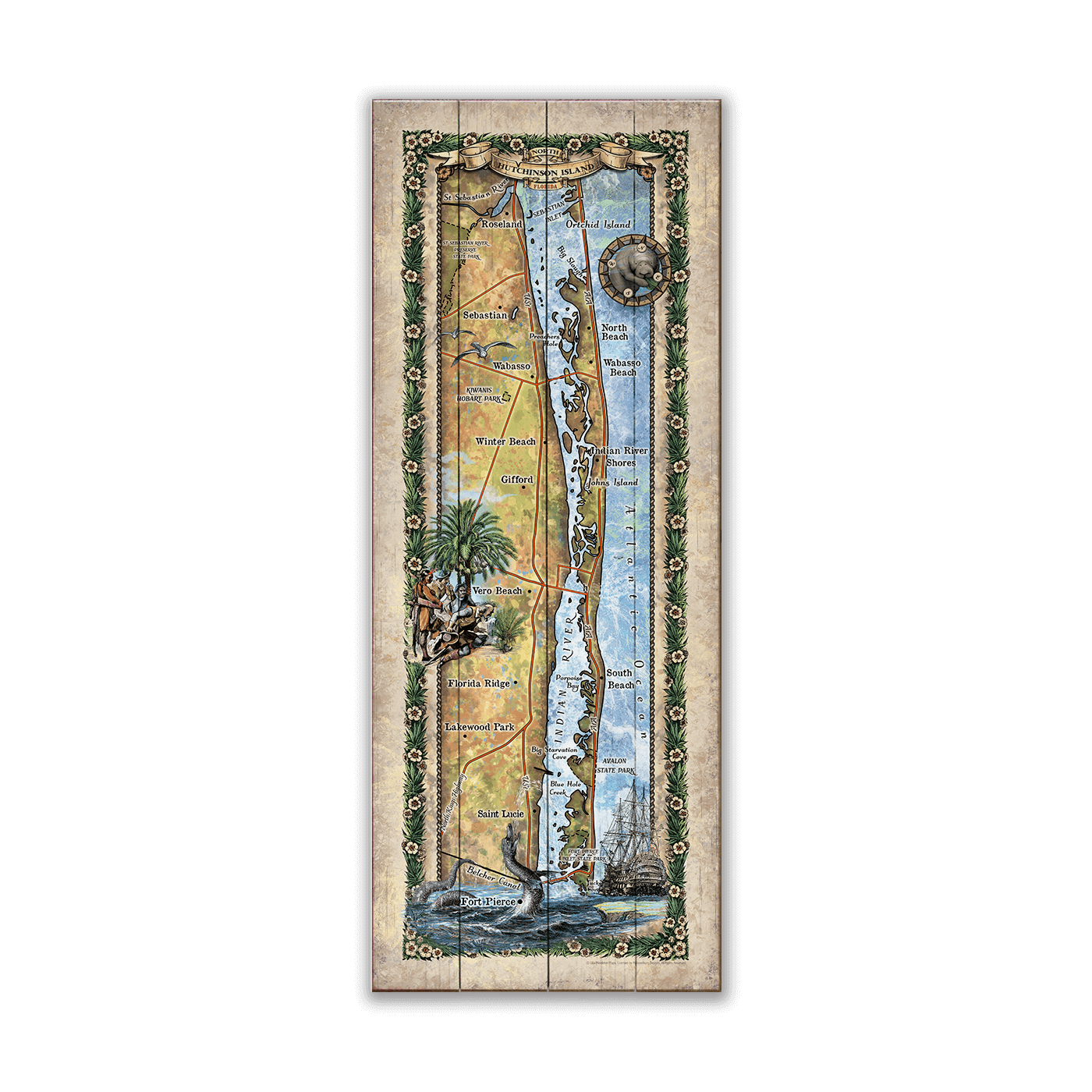 North Hutchinson Island, Florida: Illustrated Map - Wood & Metal Wall Art