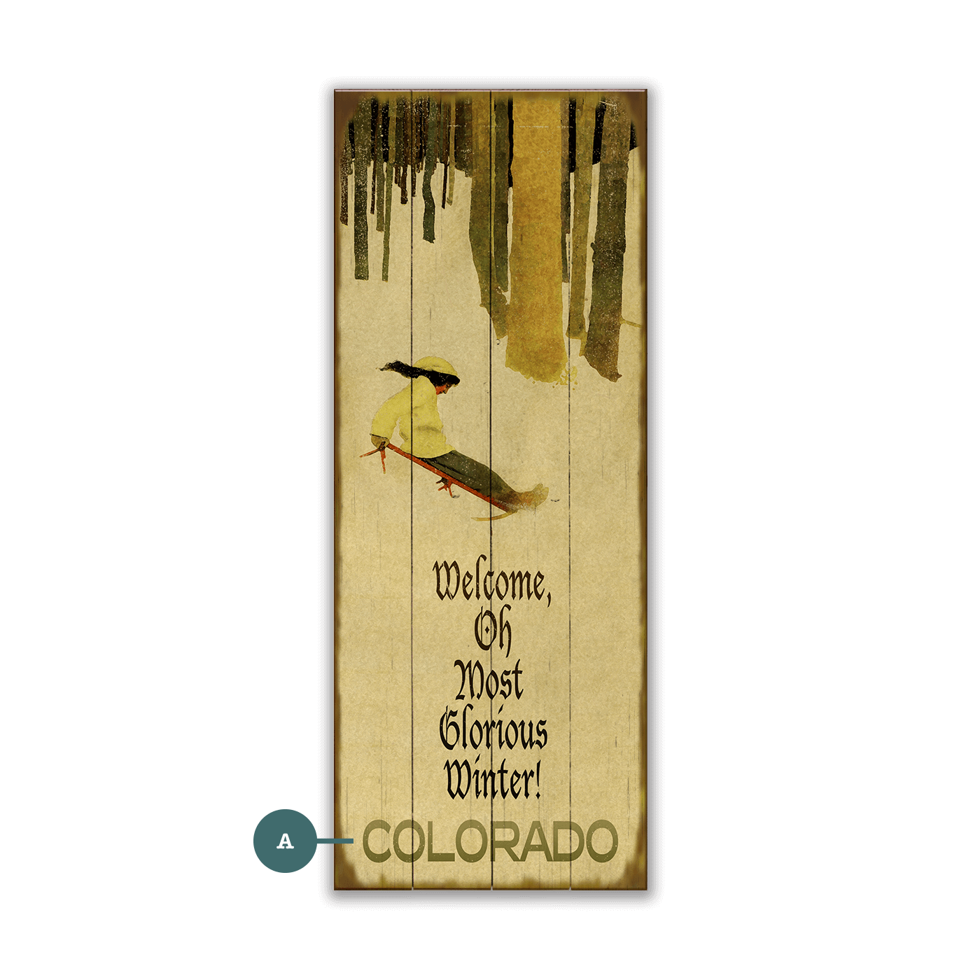 Embrace the simple joy of winter’s magic with this cheery artwork. A sledder races through a snowy forest of towering trees, exuding a sense of motion and adventure. The warm, earthy tones bring a nostalgic charm, while the scene captures the exhilaration of gliding through fresh snow. Perfect for the outdoor adventurer or admirer of story worthy art, it’s a lively celebration of winter’s crisp energy, reminding us of the thrill and wonder that the season brings.