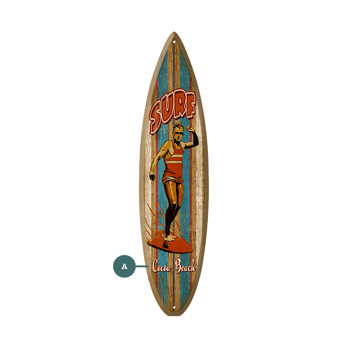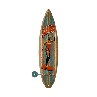 Capture the essence of the surfing legacy with this classic surfboard artwork. The piece features a bold depiction of a surfer in action, showcasing his skill and balance. The vintage-inspired design, set against a rustic wooden backdrop with stripes of muted colors, evokes the nostalgia of early surfing culture. This artwork is a celebration of the enduring spirit and excitement of surfing, making it a perfect addition to any space that values adventure and the timeless appeal of the ocean waves.