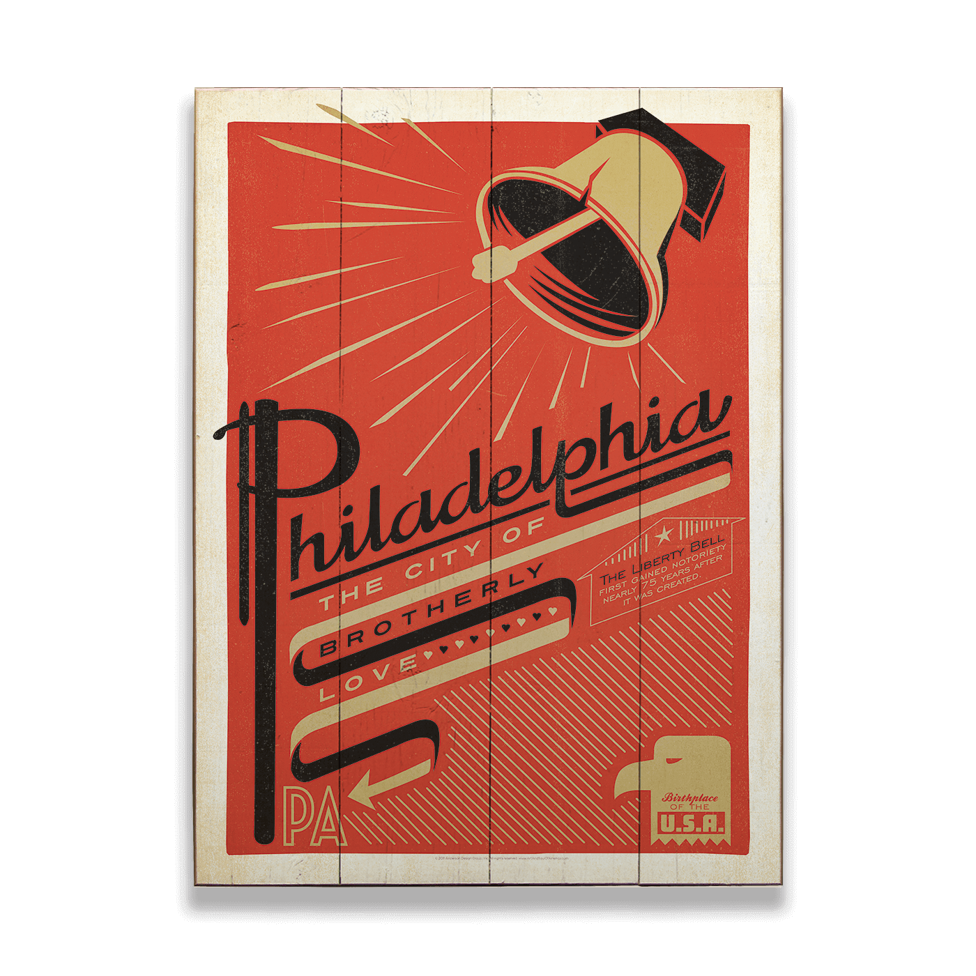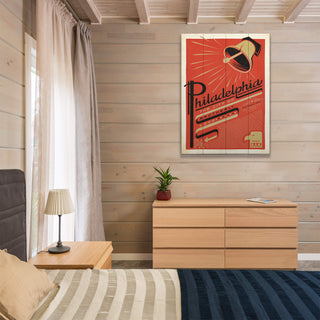 Step into the heart of American heritage with this striking Philadelphia vintage artwork. Featuring the iconic Liberty Bell, a symbol of freedom, set against a radiant red backdrop that captures the city's revolutionary spirit, this poster pays homage to Philadelphia's rich history. Perfect for history buffs, Philly natives, and urban art lovers, this piece combines bold graphics with a warm, retro aesthetic, making it an eye-catching statement for any room.