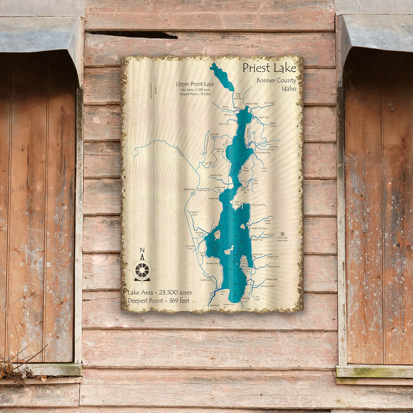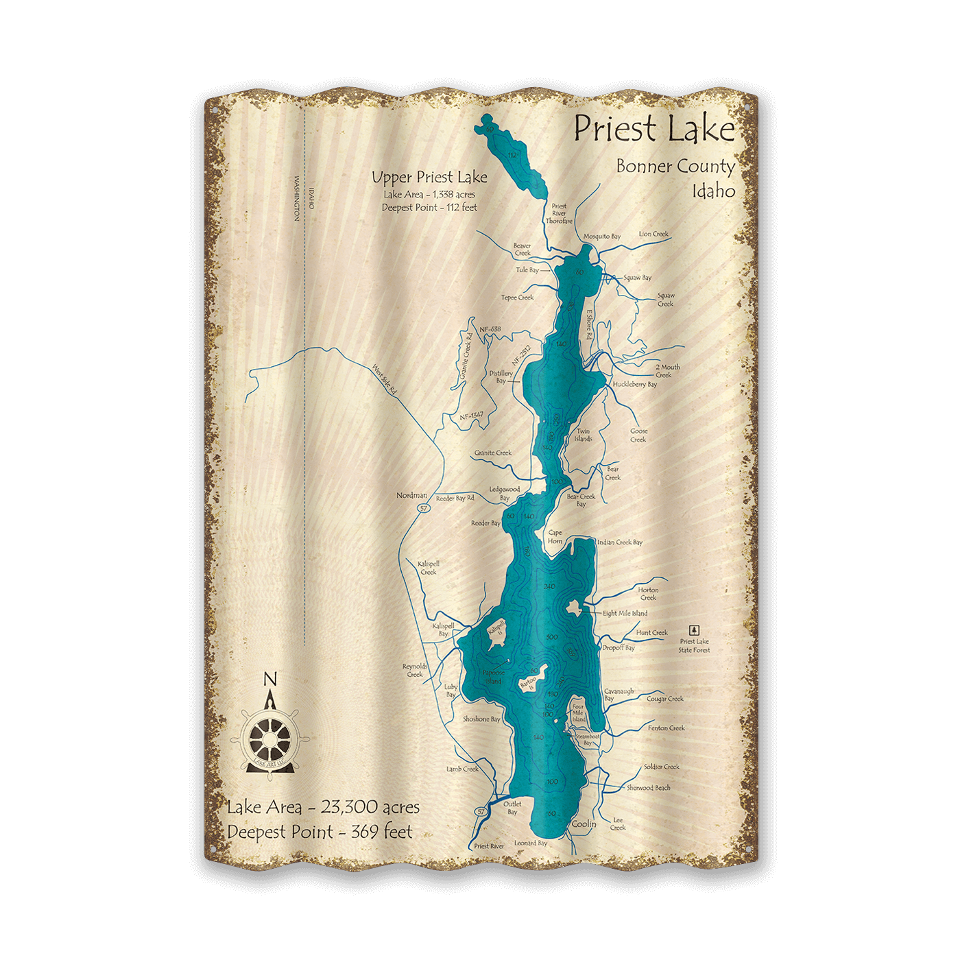 Priest Lake, Idaho - Corrugated Metal Wall Art