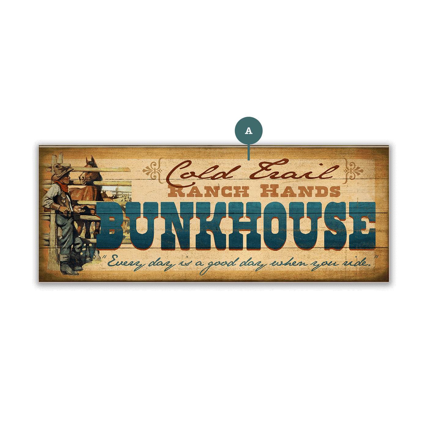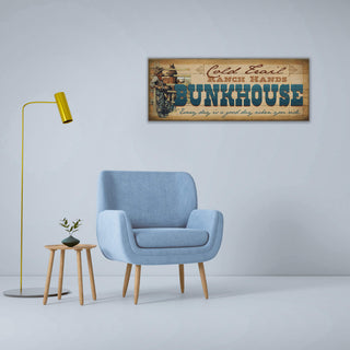 This vintage-style artwork reflects the equine camaraderie of ranch life with a rustic, timeworn design. Featuring bold typography and a classic western illustration of a cowboy by the corral, it evokes the essence of a ranch hand’s home away from home. The warm, distressed tones enhance its nostalgic charm, making it a perfect piece for those who appreciate western heritage, equestrian culture, or rustic decor. Ideal for cabins, bunkhouses, or western-themed spaces, this artwork captures the enduring spirit of life on the open range.
