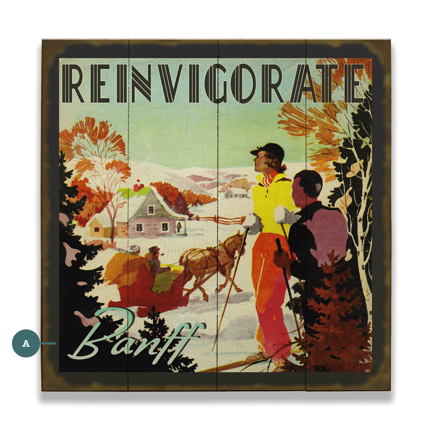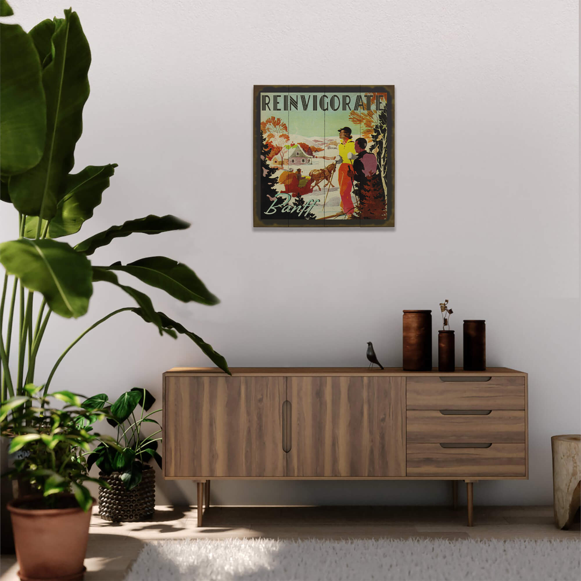 This artwork exudes the invigorating charm of a snowy countryside retreat. Featuring skiers and a horse-drawn sleigh gliding through a picturesque winter landscape, it invites viewers to embrace the serenity and joy of outdoor adventures. The vibrant colors and dynamic composition capture the beauty of the season, blending nostalgia with the fresh energy of winter exploration. A celebration of crisp air, scenic vistas, and rejuvenating escapes.