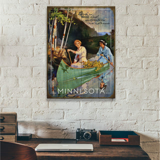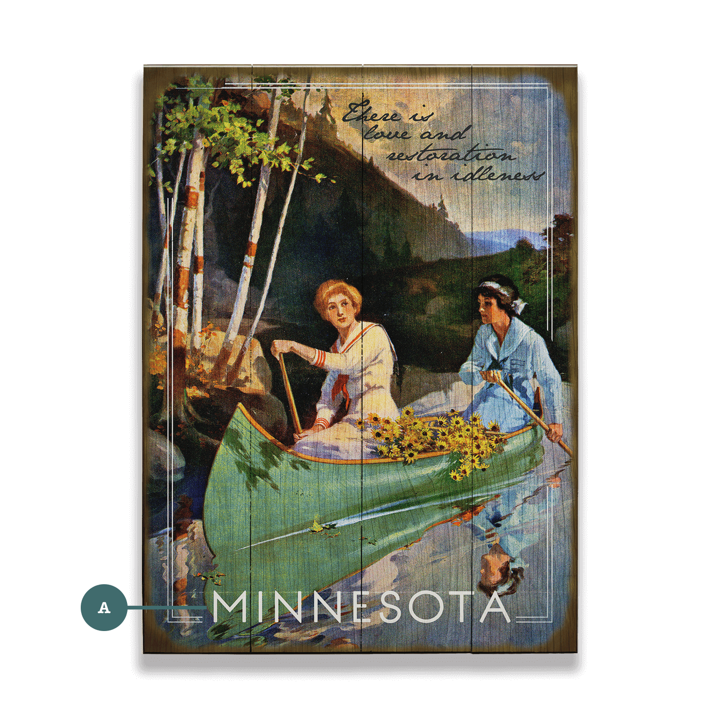 Step back in time with this enchanting vintage artwork, capturing a serene moment of two women rowing through a tranquil woodland waterway. This piece beautifully combines nostalgic charm with a touch of romantic wilderness, featuring an intricate blend of nature and delicate human interaction. The quote, "There is love and restoration in idleness," adds a poetic touch, making it a perfect addition to any space that celebrates the beauty of quiet moments and natural settings.