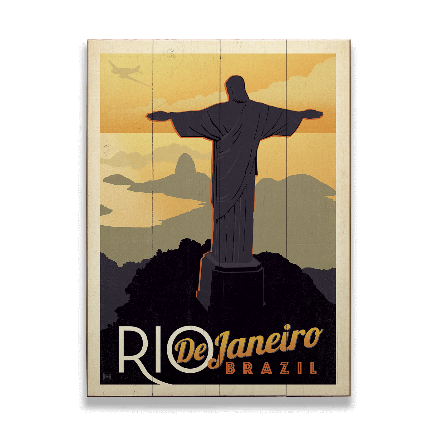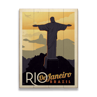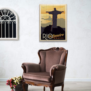 Transport your space to the heart of Brazil with this evocative Rio de Janeiro travel print. Dominated by the majestic Christ the Redeemer statue set against a golden sunset backdrop, this piece is a vibrant celebration of the city’s cultural and spiritual significance. The earthy tones and art deco style create a vintage feel, inviting a piece of Rio's timeless allure into any room.