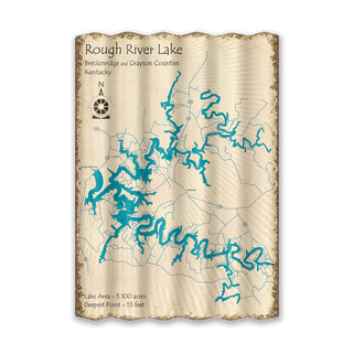 Introducing our decorative map featuring Rough River Lake, the 5100-acre meandering lake created by the Rough River Dam in Kentucky. Rough River Lake has a diverse array of aquatic life, including largemouth, white, and Kentucky bass, bluegill, channel catfish, crappie, and rough fish. With a maximum depth of 55 ft, this lake offers ample opportunities for aquatic activities.
