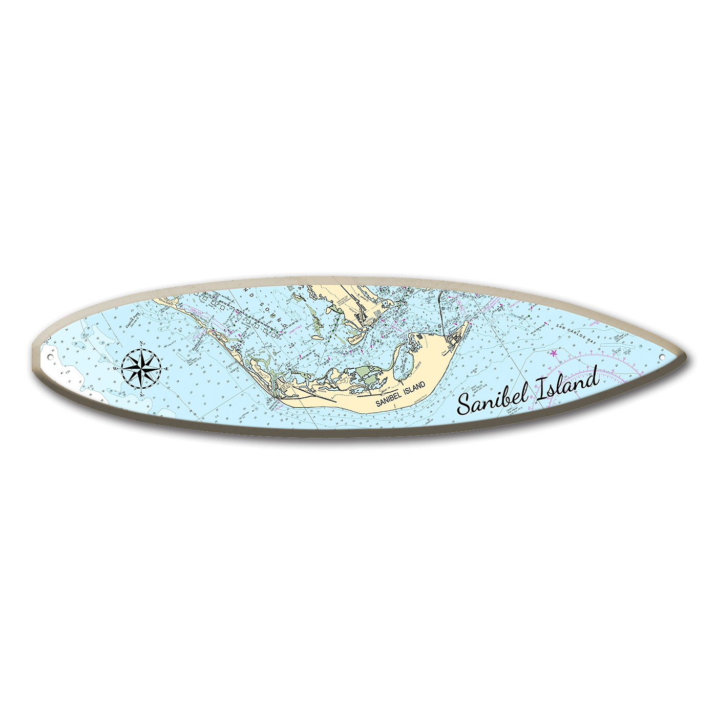 This artwork features a nautical chart of Sanibel Island, Florida, displayed in a sleek surfboard-shaped design that brings a modern twist to classic coastal style. The chart highlights the island’s shoreline, surrounding Gulf waters, and boating channels, complete with a decorative compass rose to enhance its maritime look. Famous for its world-class shelling beaches, wildlife refuges, and laid-back coastal atmosphere, Sanibel Island is a favorite destination for nature lovers and beachgoers alike. Perfect for coastal-inspired decor, this surfboard-shaped artwork is a unique way to celebrate the beauty and charm of Sanibel Island.