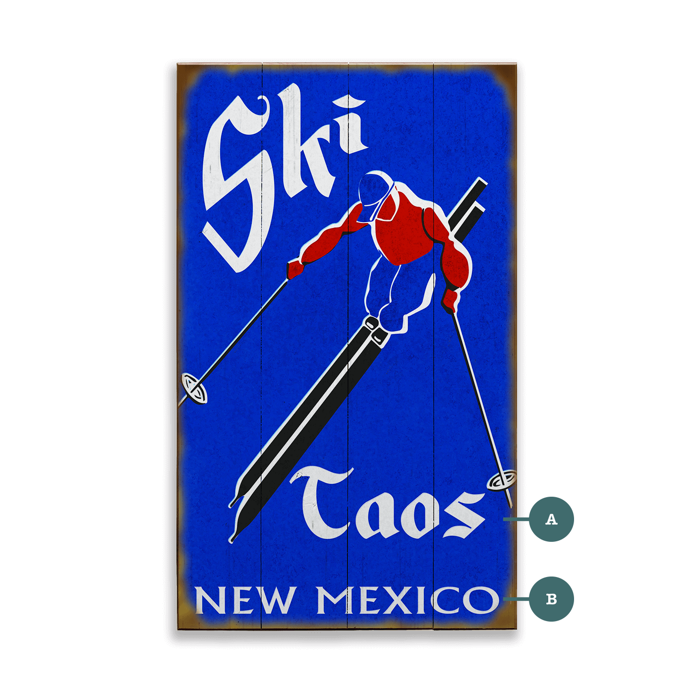 Loyd, who had been dabbling in cartooning and surfing, was encouraged to take an art class taught by Eric Titlebaum, a cartoonist of Playboy Magazine notoriety. With time to tinker during the desolate winters, Laura began asking Loyd to create merchandise for their shop. Recognizing the untapped potential of the skiing crowd, they started designing and producing unique wood and metal signs inspired by vintage ephemera.