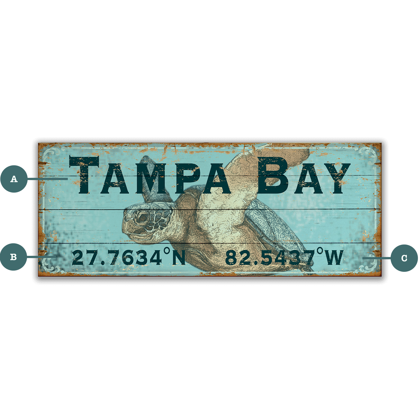 Enjoy complimentary personalization for this piece, meticulously handcrafted by our graphic design team. Specify your desired text for points A, B, and C. To ensure perfection in your custom piece, please verify your text carefully. Missing personalization information will revert to our default design as shown. To remove all text from a field, type "Remove" in that field.