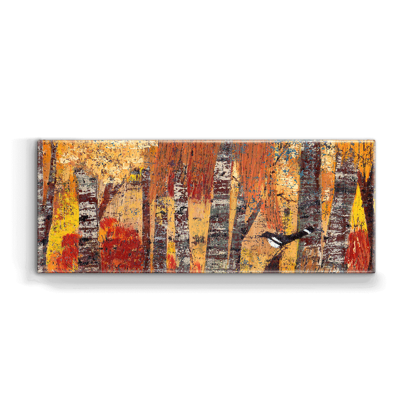 Autumn's rich palette comes to life in "Autumn Reflection," where fiery oranges and reds blend with the rustic browns of falling leaves. The artwork beautifully portrays the season's dramatic change, offering a visual feast that reflects the transformation of nature. It’s perfect for adding a touch of autumnal warmth to any space.