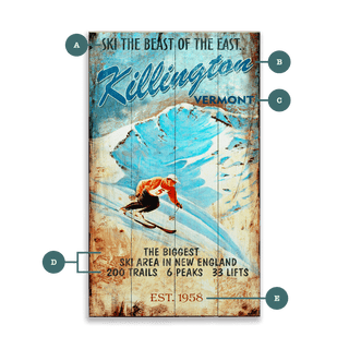 This dynamic skiing artwork captures the thrill and adventure of a classic winter sports destination. With a bold illustration of a skier speeding down a snowy slope, the piece evokes the excitement of the slopes and the beauty of the mountains. The vintage-inspired design and weathered finish give it nostalgic charm, making it perfect for ski lodges, cabins, or winter sports enthusiasts.
