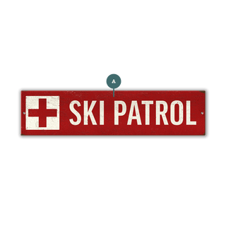 This vintage-inspired sign celebrates the essential services of the ski patrol. The 'Ski Patrol' sign features a bold red background with the iconic white cross, symbolizing the trusted ski patrols that ensure safety on the slopes. This customizable sign can include your favorite mountain location, making it an ideal personalized piece for cabins, mountain lodges, or ski enthusiasts. Whether displayed alone or alongside our trail difficulty signs, this piece adds a touch of nostalgia and adventure, honoring the heroes of the slopes who keep the mountains safe.
