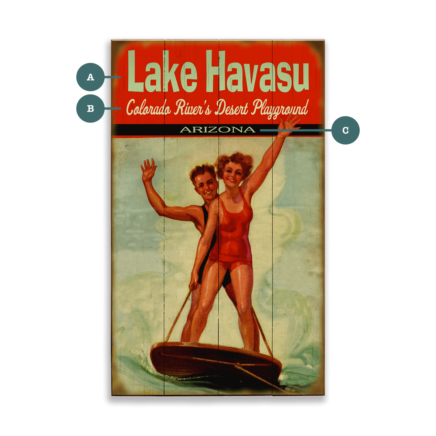 Enjoy complimentary personalization for this piece, meticulously handcrafted by our graphic design team. Specify your desired text for points A, B, and C. To ensure perfection in your custom piece, please verify your text carefully. Missing personalization information will revert to our default design as shown. To remove all text from a field, type "Remove" in that field.