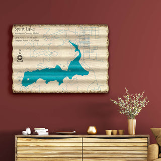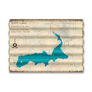 Discover the beauty of Spirit Lake, nestled in Kootenai County, Idaho, with this detailed map showcasing its unique shoreline, water depths, and surrounding landmarks. Covering 1,445 acres with a deepest point of 100 feet, Spirit Lake is a destination rich in history, natural beauty, and outdoor recreation. Whether you're drawn to its serene waters for boating and fishing, exploring the nearby trails, or simply enjoying the picturesque views, this artwork captures the essence of a beloved Idaho gem. A perfect tribute for those who cherish their time spent at Spirit Lake, whether as a local, a visitor, or an admirer of the region’s stunning landscapes.