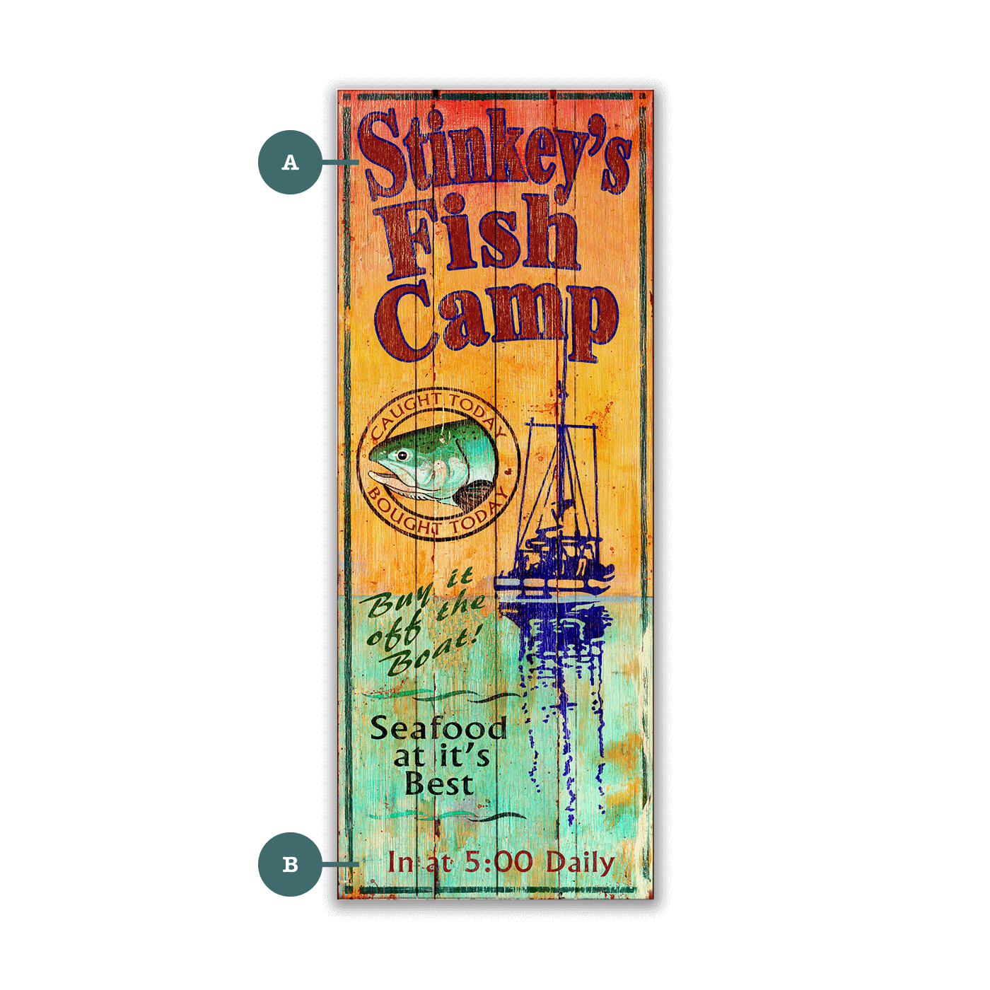 Stinky's Fish Camp - Wood and Metal Wall Art