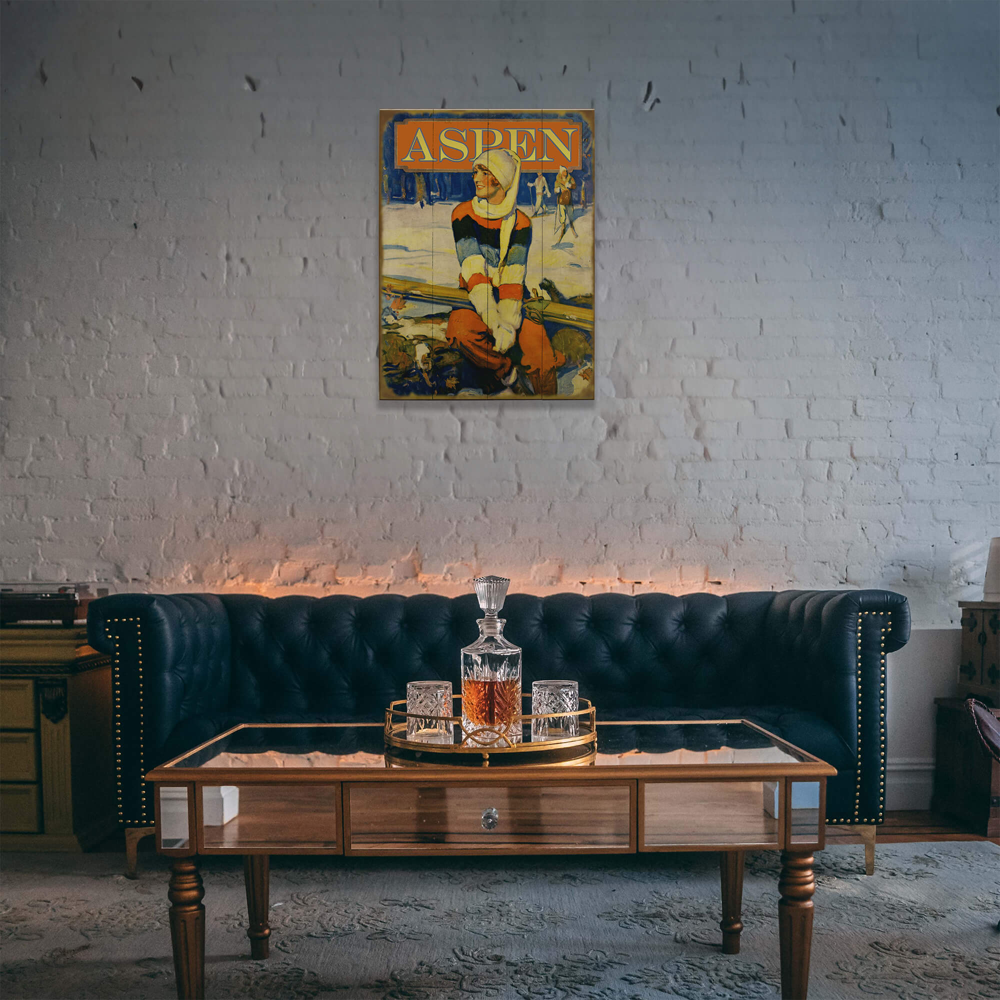 Add a sense of quiet charm and winter elegance to your decor with this expressive artwork. A poised skier sits on a snow-dusted log, wrapped in warm, colorful attire, her gaze set softly on the distance as skiers glide through the wooded background. The serene, painterly scene highlights both the beauty of the snowy landscape and the contemplative joy of a peaceful winter day. A celebration of timeless style and the tranquil magic of alpine adventures, this piece is ideal for the sentimental skier or lover of vintage travel art.
