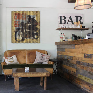 Embrace the spirit of the open road with this rugged "Sturgis Next Exit" corrugated aluminum sign, a true homage to the legendary motorcycle rally. The sign, emblazoned with the silhouette of a classic bike and its rider, carries the dust and dreams of highways traveled. The aged metal and distressed finish speak to the raw energy and freedom of the biking culture. This piece is an instant classic for enthusiasts and makes a bold statement in a garage, den, or on the walls of a biker bar. It's a call to the wild-hearted, reminding them that adventure is just a ride away.