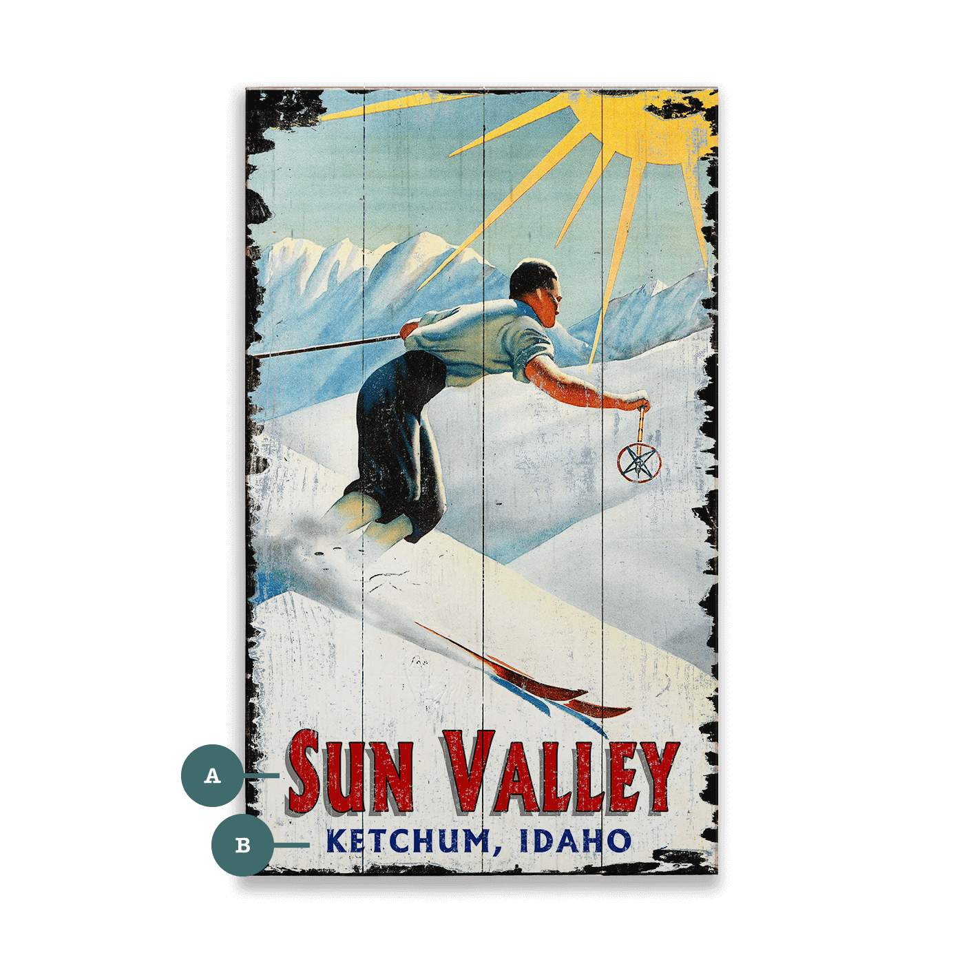 This vintage-inspired artwork features a skier descending a snowy mountain under a bright sun, capturing the thrill of alpine skiing. With a retro design and distressed finish, it evokes nostalgia for classic ski resorts and winter adventures. Perfect for enhancing cabins, lodges, or ski-themed decor, it adds a sense of excitement and timeless charm to any space.