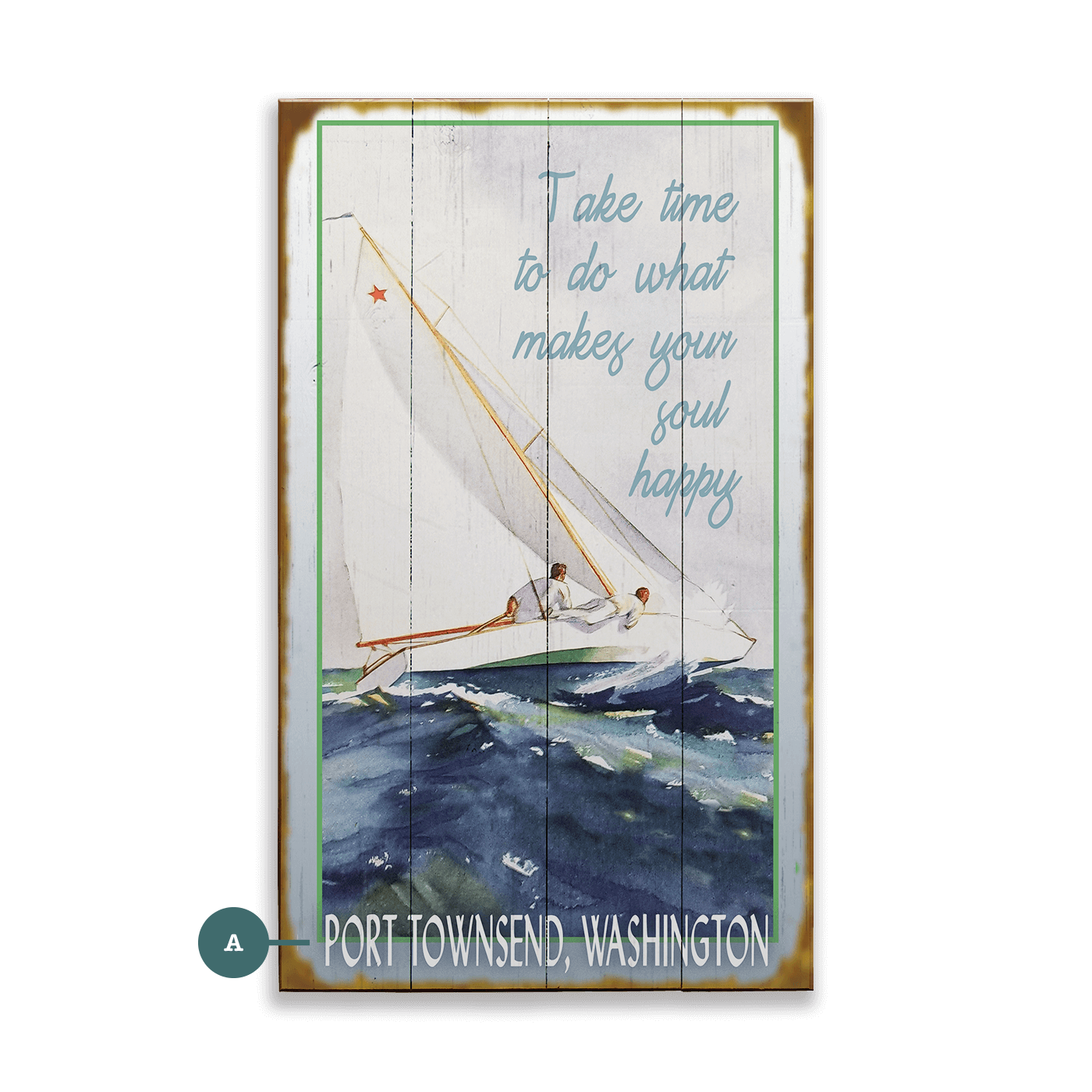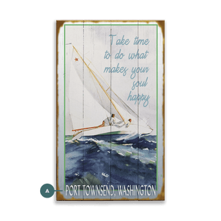 - Wood Signs: Wood signs are made from engineered wood (locally-sourced plywood). This piece features a charming wood-plank style and comes affixed with a picture hanger on the back. Wood signs are recommended for indoor use.