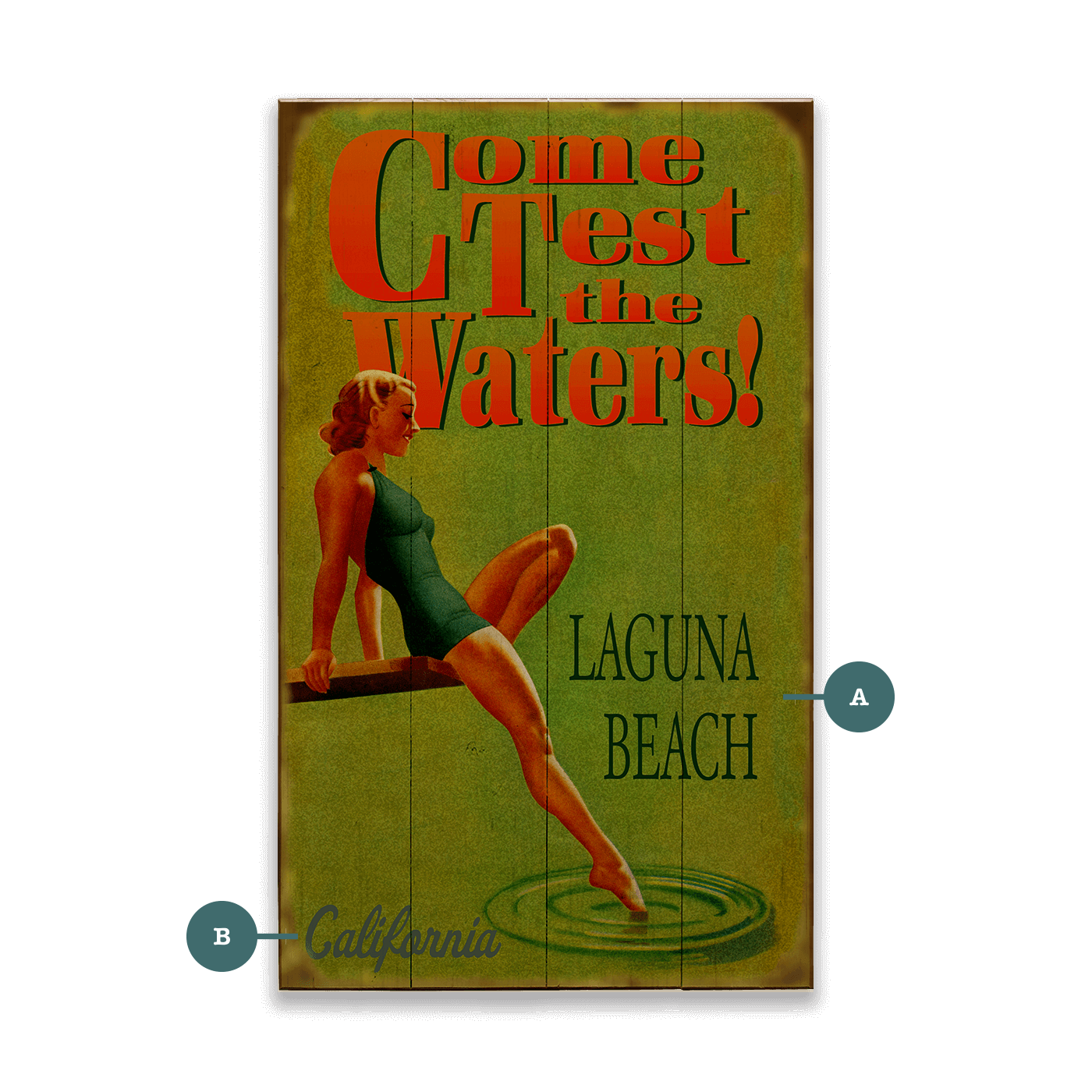 Enjoy complimentary personalization for this piece, meticulously handcrafted by our graphic design team. Specify your desired text for points A and B. To ensure perfection in your custom piece, please verify your text carefully. Missing personalization information will revert to our default design as shown. To remove all text from a field, type "Remove" in that field.