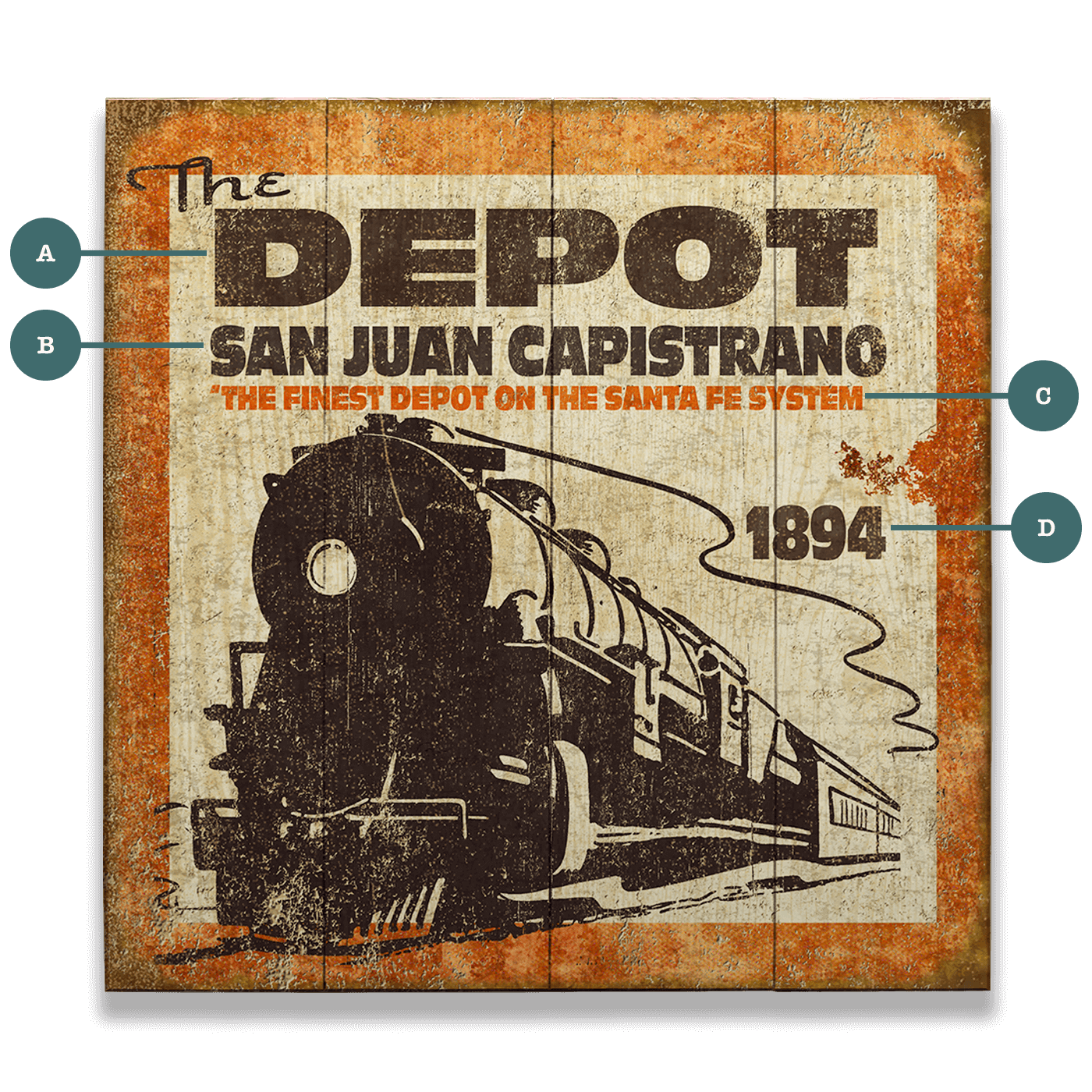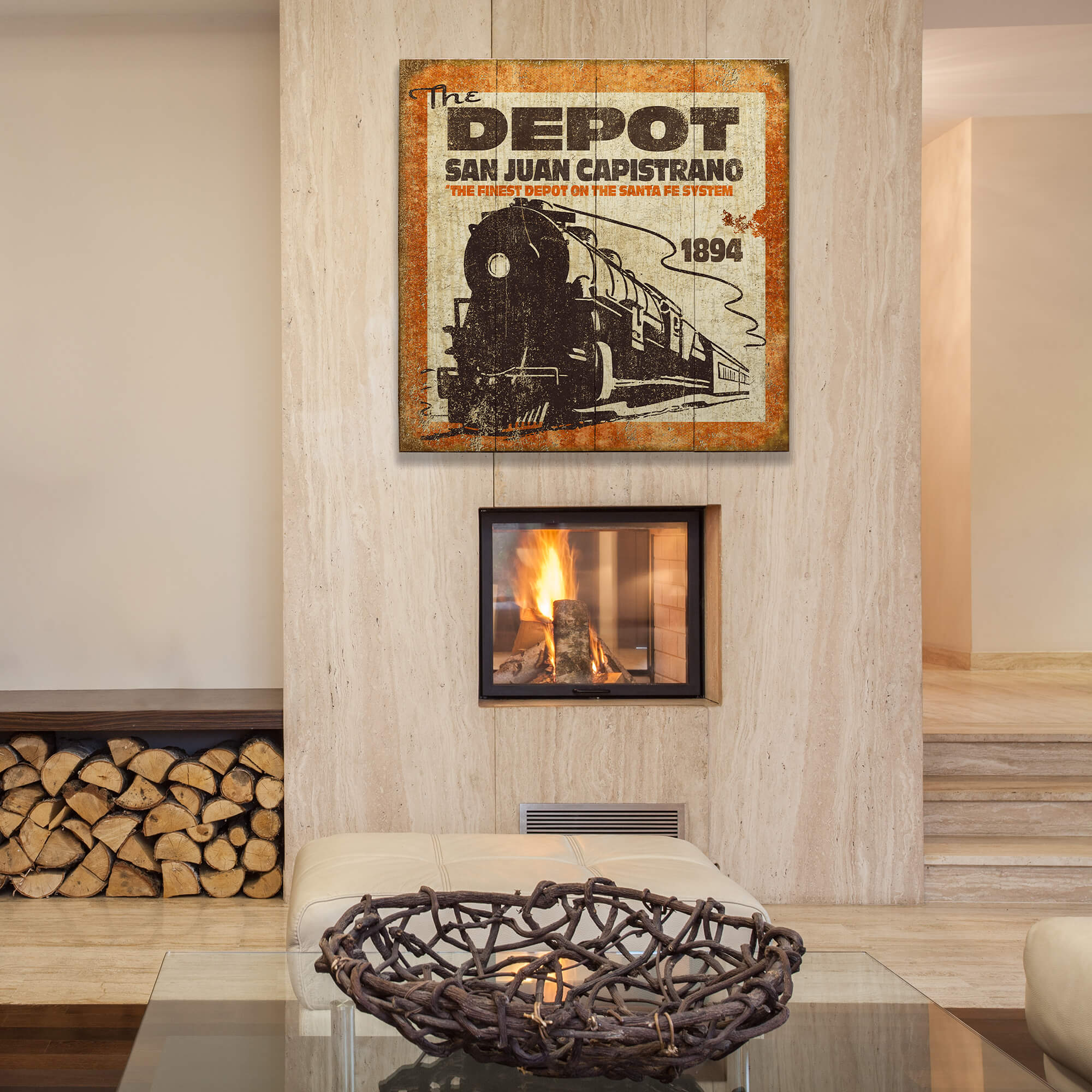 This stunning vintage artwork celebrates the historic Depot of San Juan Capistrano, revered as "The Finest Depot on the Santa Fe System." The nostalgic image features a classic steam locomotive emerging from the past, with the establishment date of 1894 proudly displayed. Perfect for railway enthusiasts and history buffs, this piece captures the essence of a bygone era in American train travel. Add a touch of retro elegance and historical charm to your space with this evocative depiction of the San Juan Capistrano Depot.
