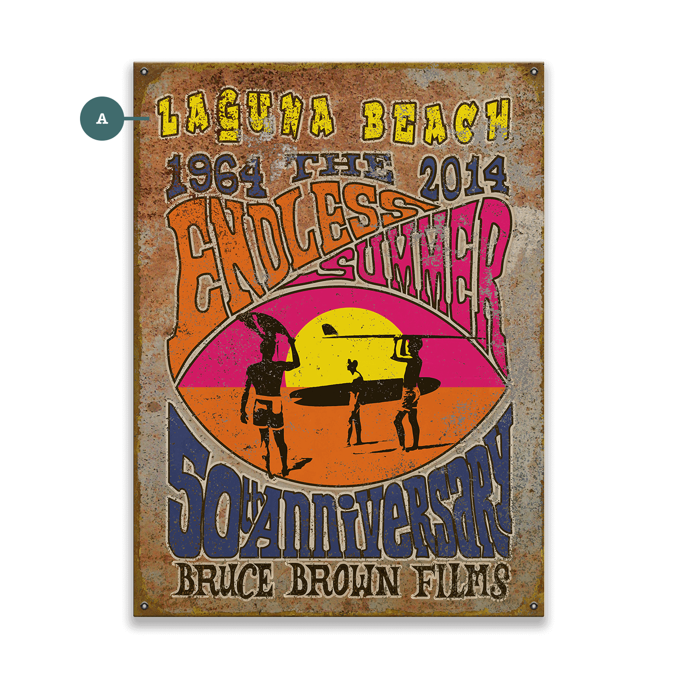 The piece pays homage to the iconic 1966 documentary film, "The Endless Summer" by Bruce Brown. The movie follows two surfers on a global journey as they chase summer around the world, seeking the perfect wave. This image, showing surfers against a sunset, has become synonymous with the surf culture and the timeless allure of the surfing lifestyle. It captures the spirit of adventure and freedom explored in the film, making this artwork not only a decorative piece but also a tribute to a seminal moment in surf culture and cinema.