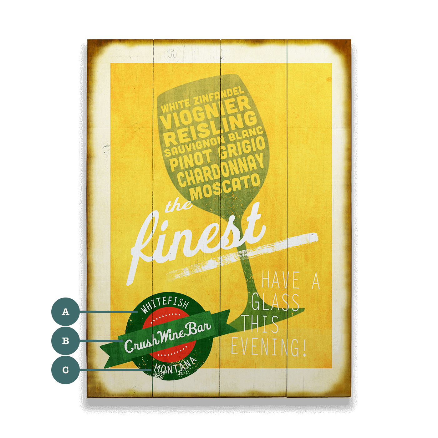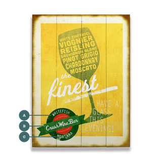 Celebrate the variety of wines with this vibrant poster listing popular wines like White Zinfandel, Viognier, and Moscato. Ideal for any wine lover's wall or a cozy wine bar decor.