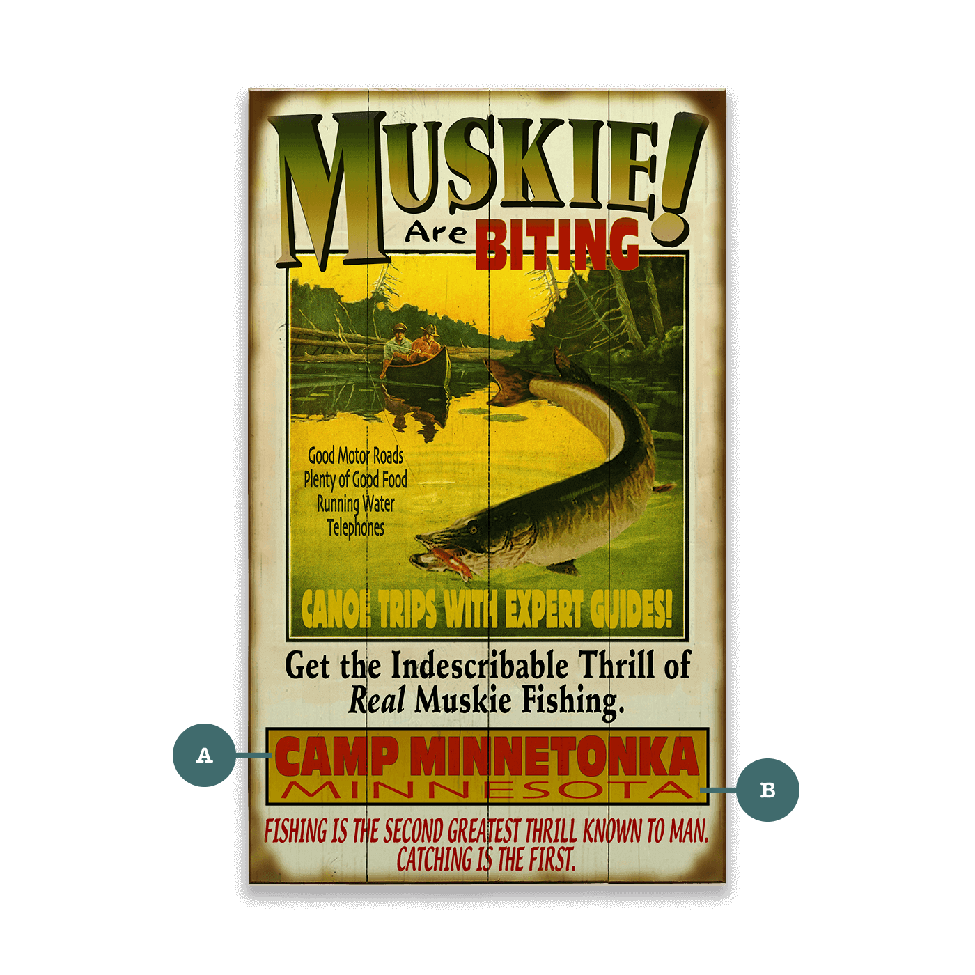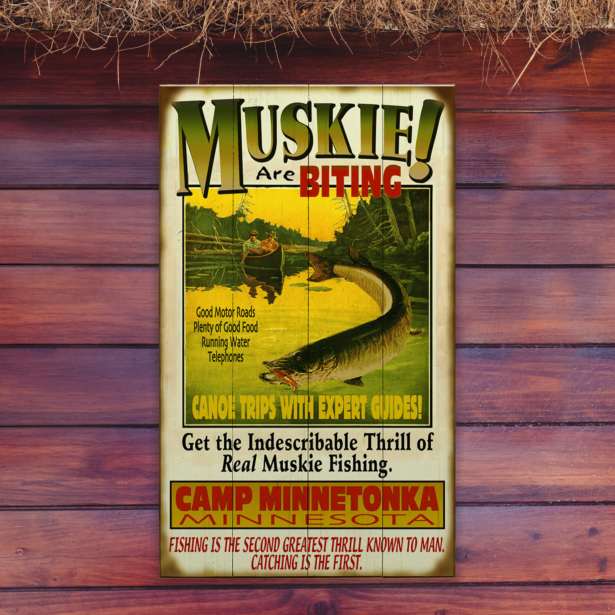 Dive into the excitement of muskie fishing with this captivating vintage-style artwork. Highlighting a dramatic scene of a muskie being caught, this piece showcases the intense thrill of the sport. Ideal for cabins, lodges, or any nature-themed decor, this artwork is a must-have for those who love the challenge of muskie fishing.