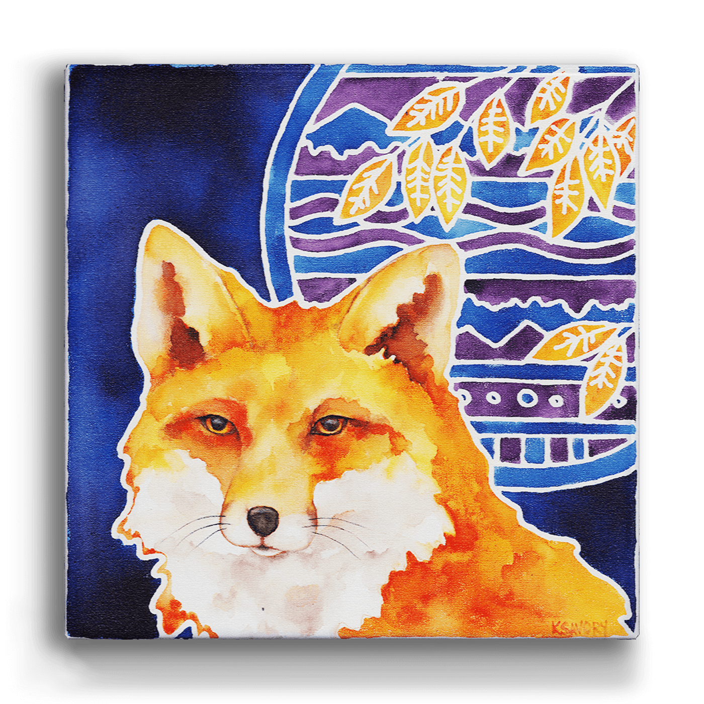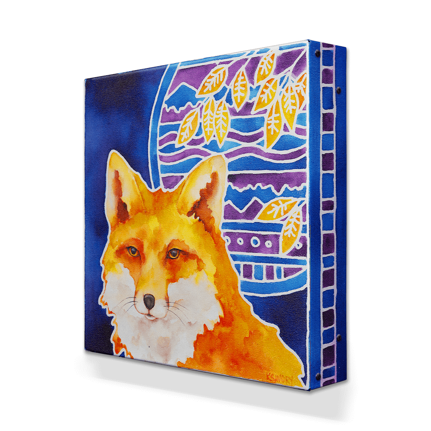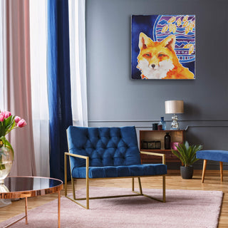 Bring a touch of the wild to your decor with this stunning fox artwork. Featuring a vibrant orange fox against a deep blue background framed by bold mosaic patterns and autumn leaves, this piece captures the fox’s watchful gaze and natural elegance. Perfect for adding color and sophistication to any room, it’s an ideal choice for nature lovers and art enthusiasts looking for a statement piece.