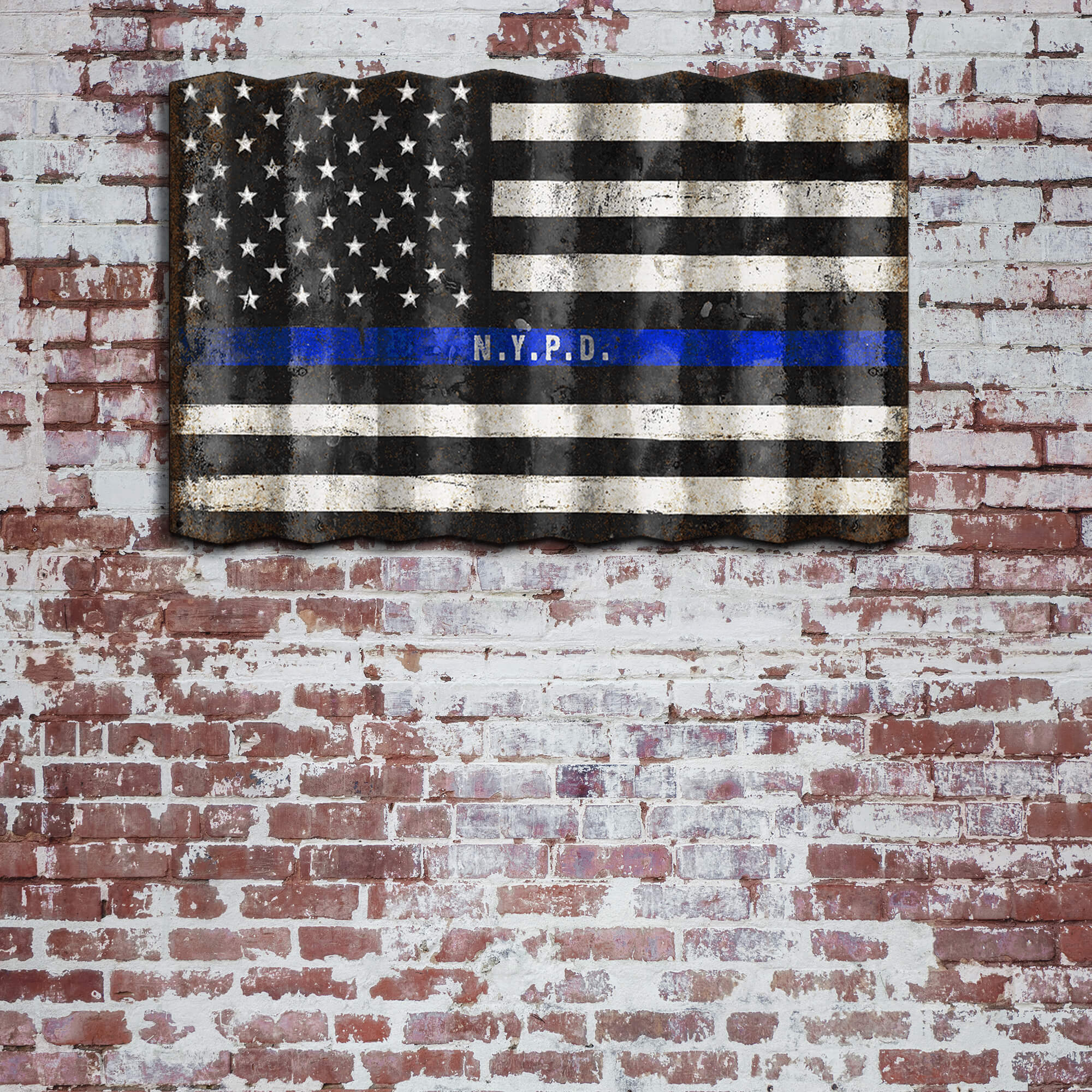 Thin Blue Line Flag - Corrugated Metal Wall Art