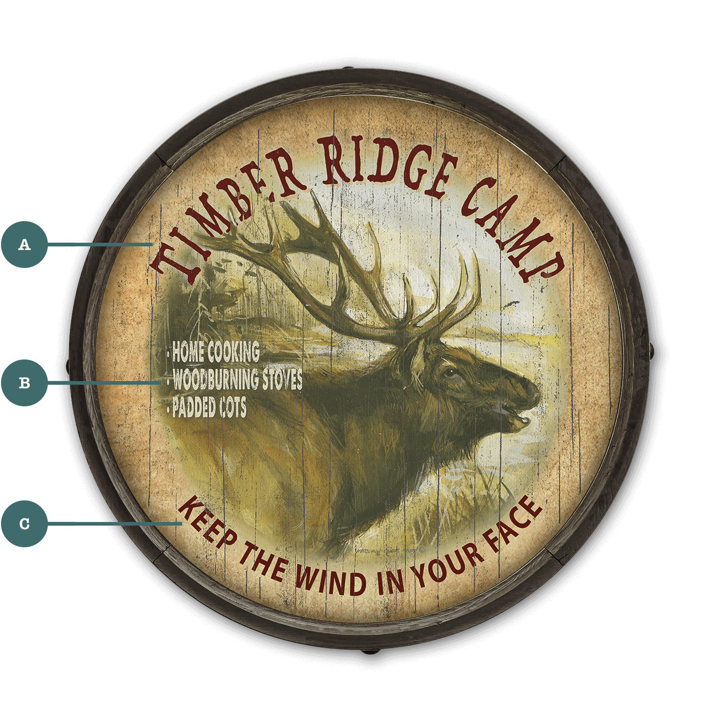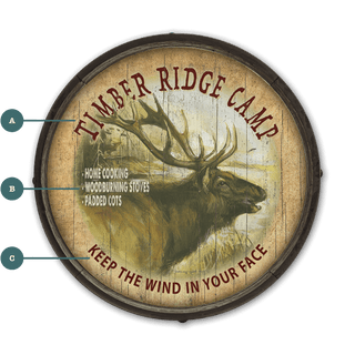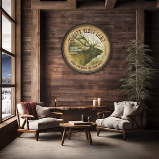 Welcome to "Timber Ridge Camp," where the call of the wild meets the comforts of home. This captivating artwork showcases a robust elk amid a misty forest backdrop, encapsulating the untamed beauty of nature. The sign highlights the allure of an authentic camping experience without forsaking comfort. Ideal for those who love to bring the essence of the wilderness into their living space, this piece can be personalized to feature your own message, making it the perfect addition to your lodge, den, or as a unique gift for the outdoor enthusiast.