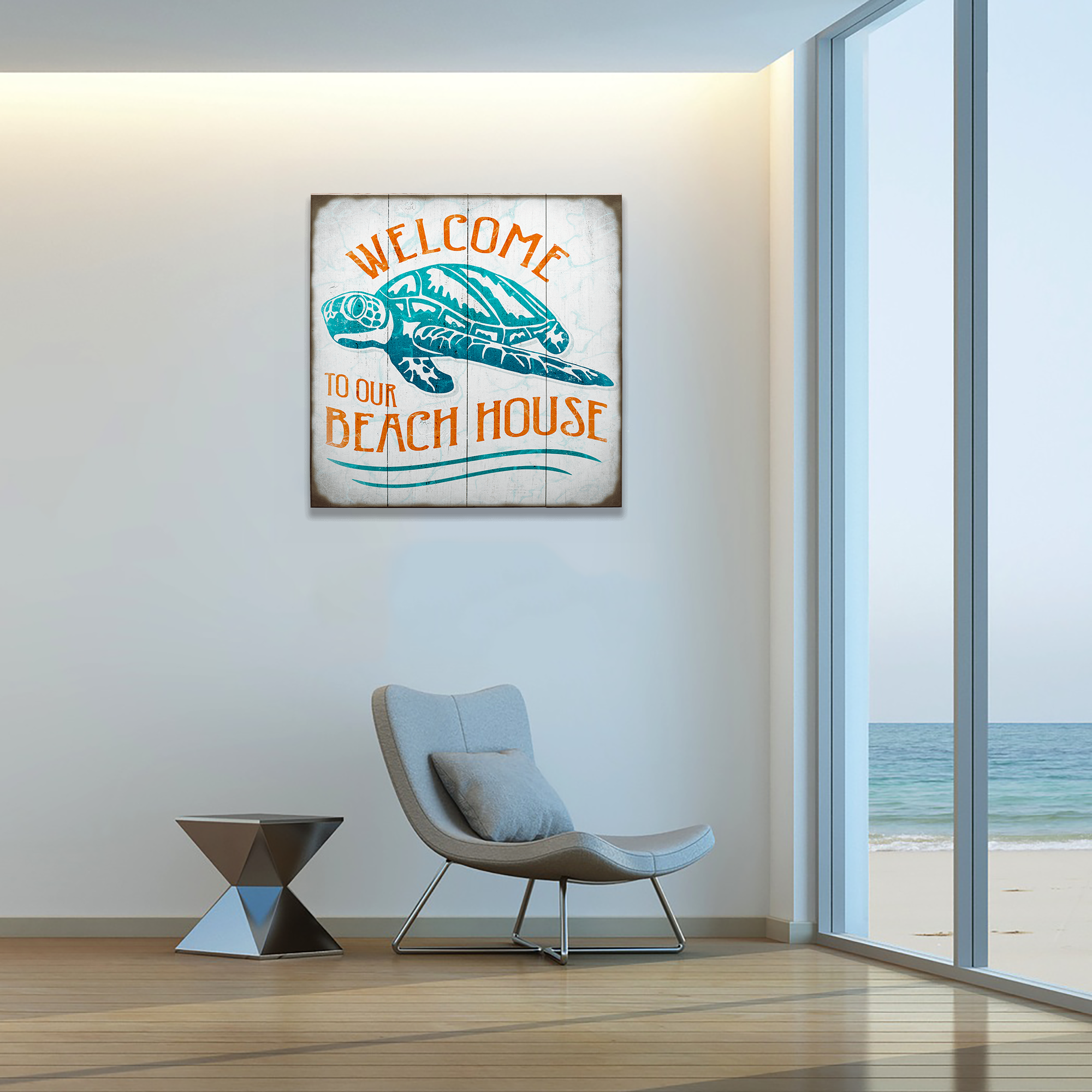 Add a splash of coastal charm to your beach retreat with our Turtle Beach House sign. Available in wood or metal and adorned with a stunning sea turtle illustration, this sign combines vintage appeal with a modern aesthetic. The calming blues and warm oranges create a welcoming atmosphere, inviting guests to relax and unwind. Perfect for beach house owners or as a unique gift, the Turtle Beach House sign embodies the spirit of seaside living and adds a personalized touch to any coastal-themed decor.