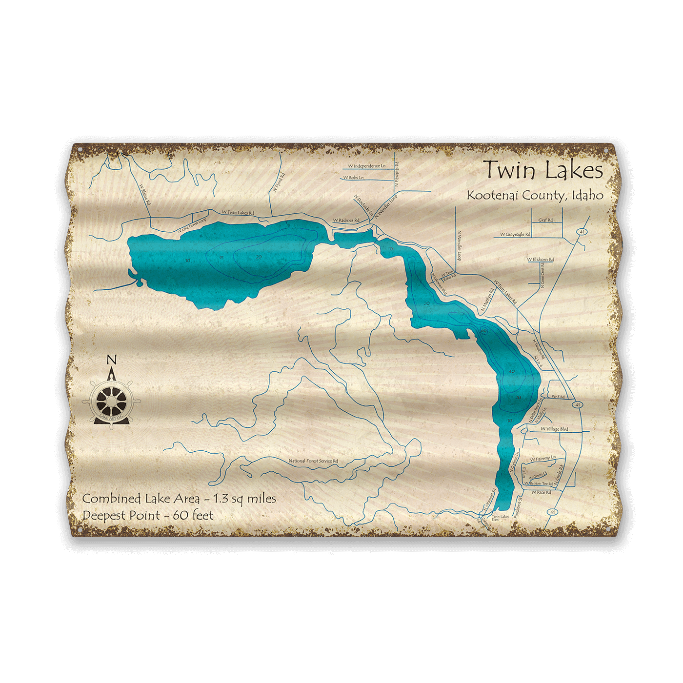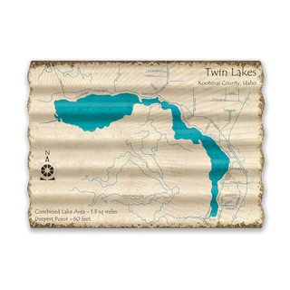 Immerse yourself in the scenic charm of Twin Lakes, Kootenai County, Idaho, with this beautifully crafted map that captures the lake’s natural contours, water depths, and surrounding roads. Spanning 1.3 square miles with a deepest point of 60 feet, Twin Lakes is a beloved getaway for boating, fishing, kayaking, and year-round outdoor adventure. Nestled amidst Idaho’s lush landscapes, this twin-basin lake offers tranquil waters, rich wildlife, and stunning panoramic views. Whether you have fond memories of lakeside retreats, angling in the pristine waters, or simply admiring the beauty of the Gem State, this striking artwork is a perfect keepsake to celebrate your connection to Twin Lakes.